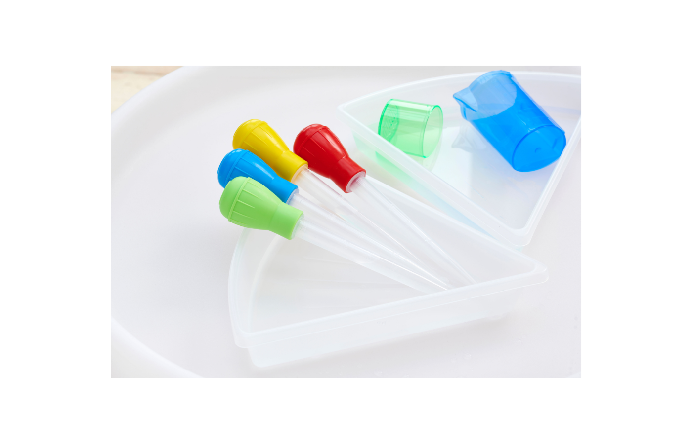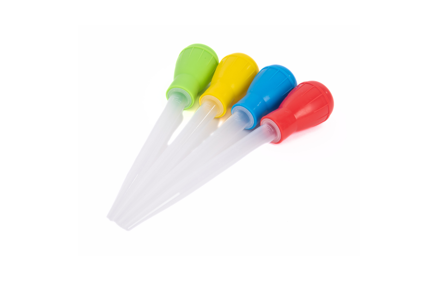 Développez la motricité fine tout en vous amusant à expérimenter avec des pipettes conçues pour les jeunes enfants. Les pipettes ont des poires colorées et des repères de mesure sur le compte-gouttes. Les dimensions sont marquées avec 10 ml, 15 ml, 20 ml et 30 ml.