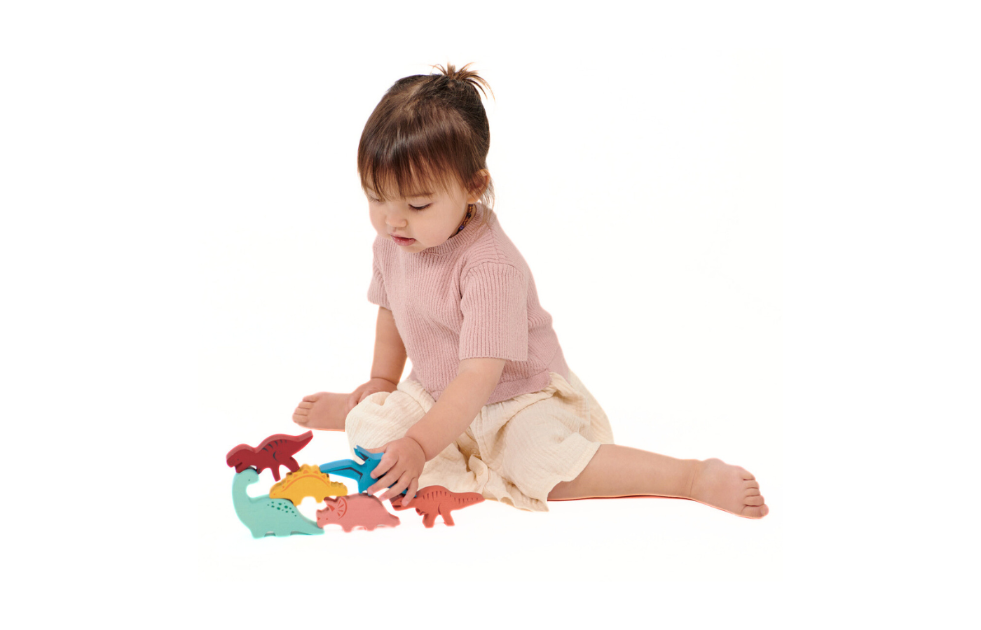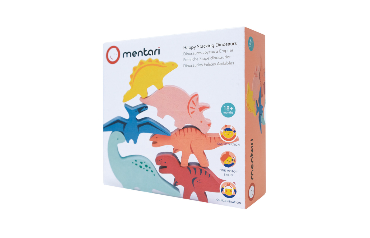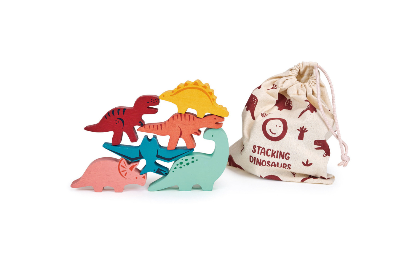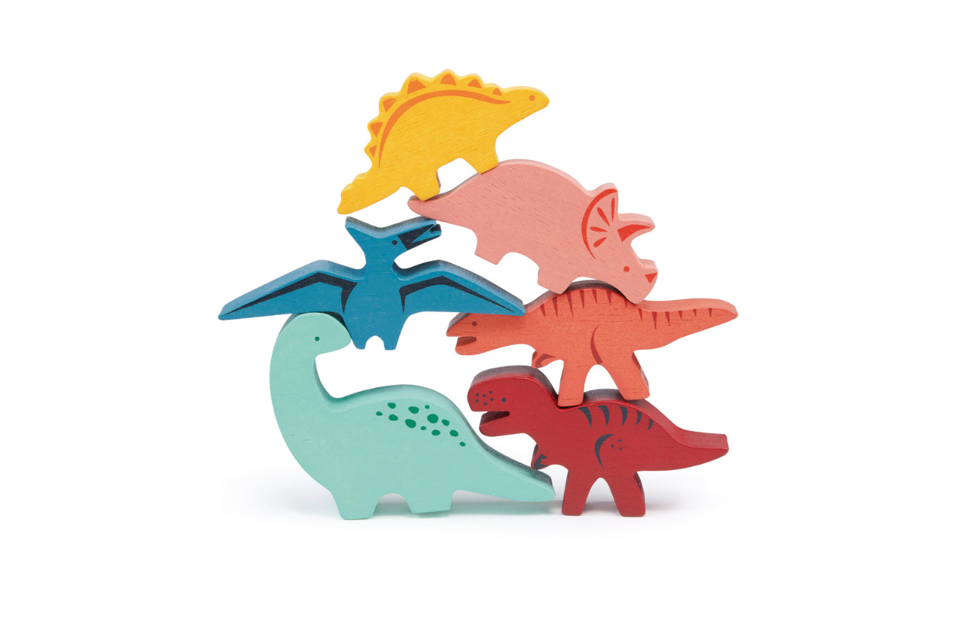 Cette belle collection de 6 dinosaures en bois est idéale pour jouer ou empiler. Peux-tu construire les plus hautes tours de dinosaures ?