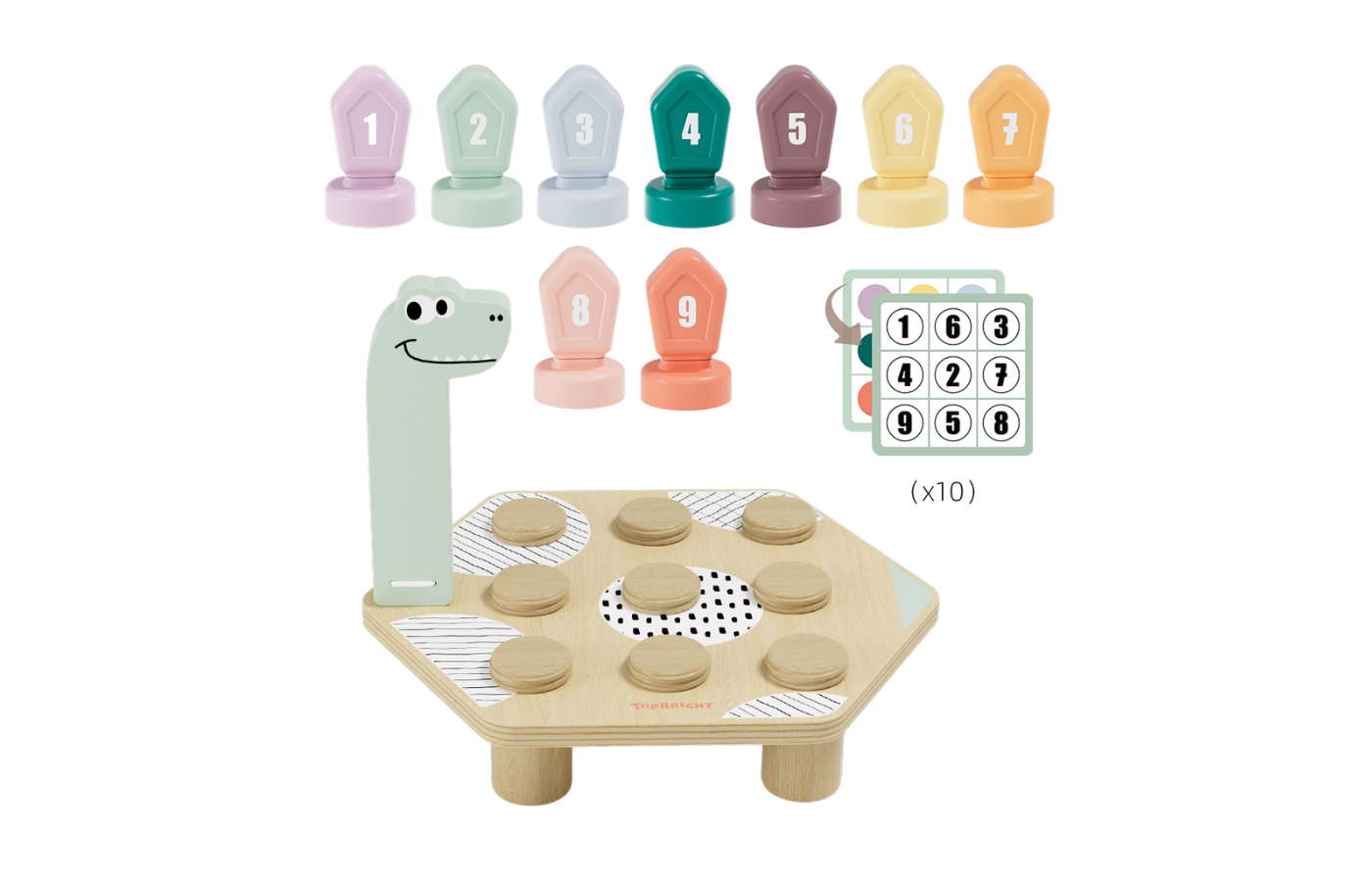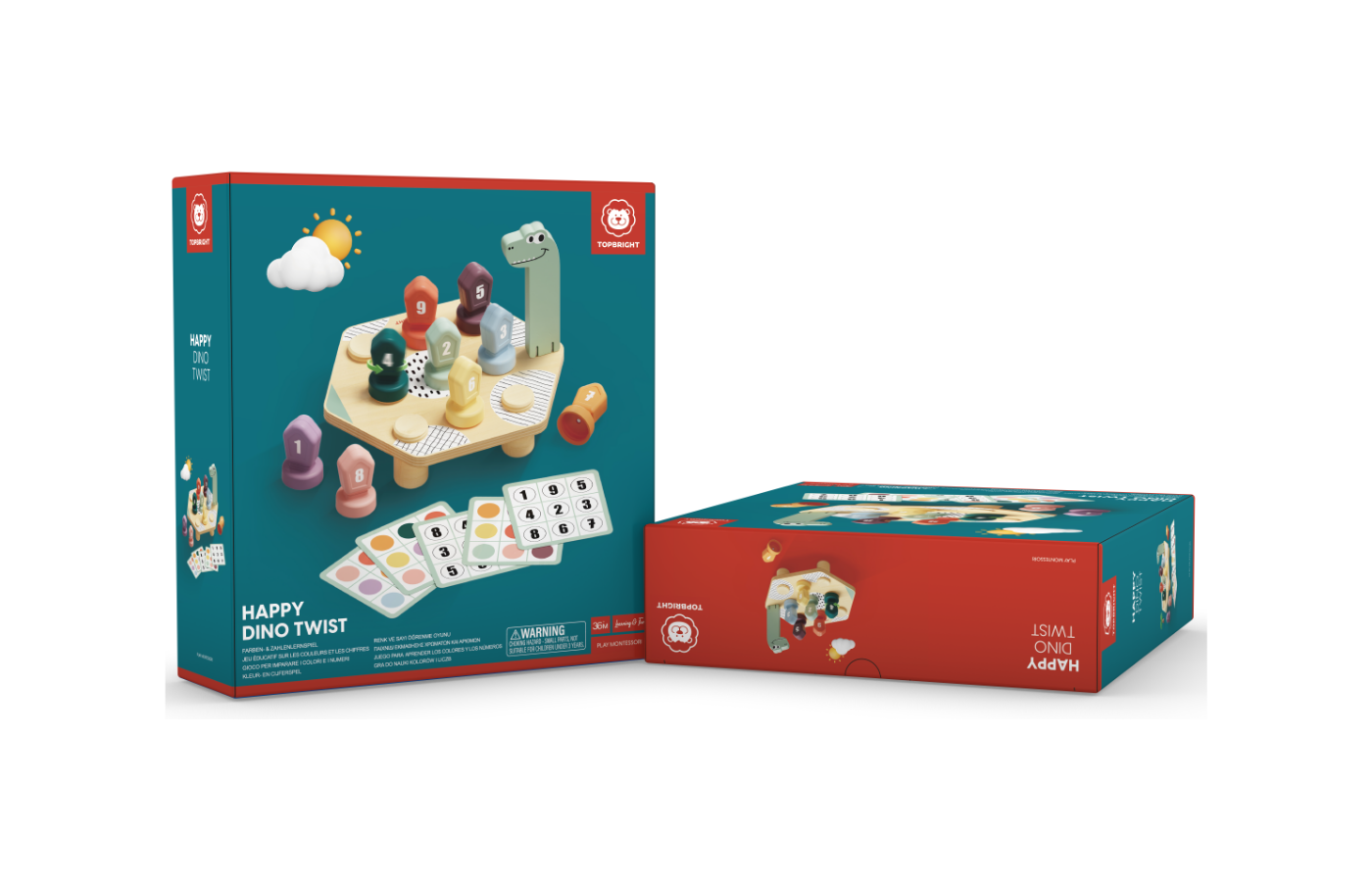 De Happy Dino Twist combineert plezier en educatie in één vrolijk speelgoedconcept. Dit houten Montessori-speelgoed is ontworpen voor kinderen van 3 tot 5 jaar en bestaat uit een vriendelijke dino, 9 kleurrijke draaidoppen en 10 dubbelzijdige kaarten.