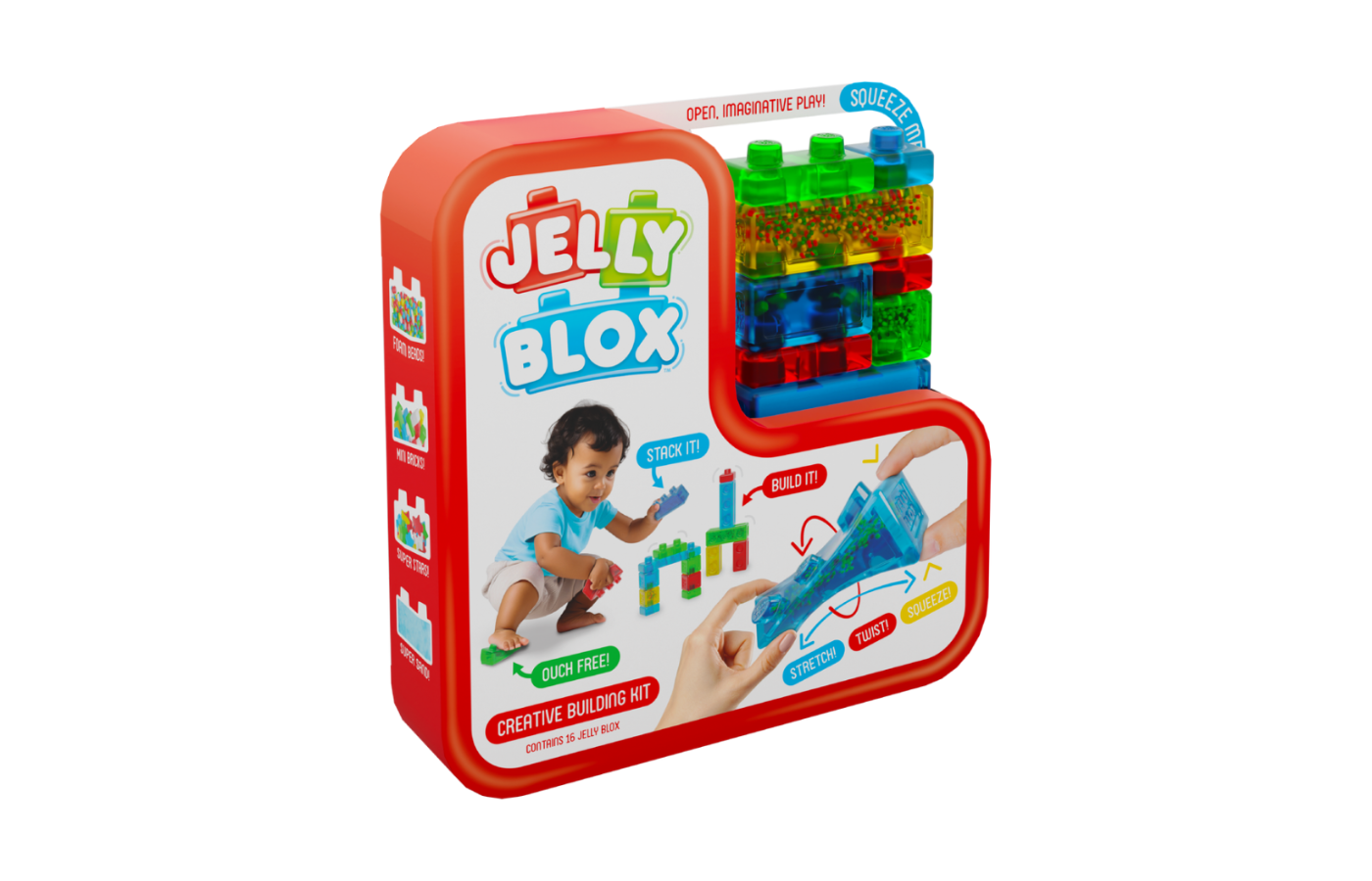 Découvrez le monde de la construction avec le Jelly Blox Creative Kit, le set parfait pour les jeunes bâtisseurs ! Avec un total de 16 blocs, ce kit offre aux enfants un terrain de jeu créatif où ils peuvent laisser libre cours à leur imagination. Jouer en toute sécurité est garanti grâce aux Blox doux, sans risque de blessures. Les différentes garnitures assurent une expérience de jeu variée, pleine de plaisir et de joie.
