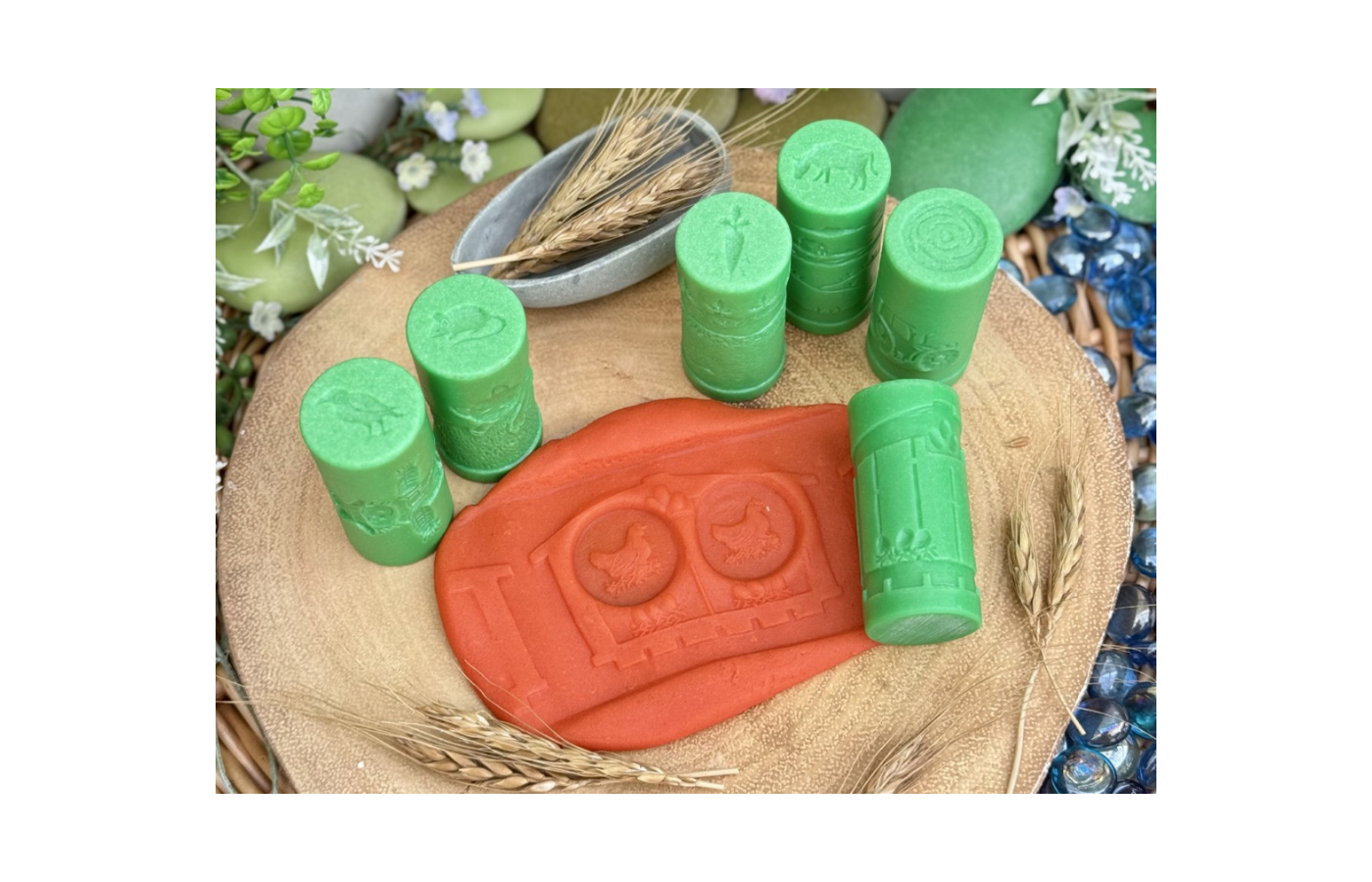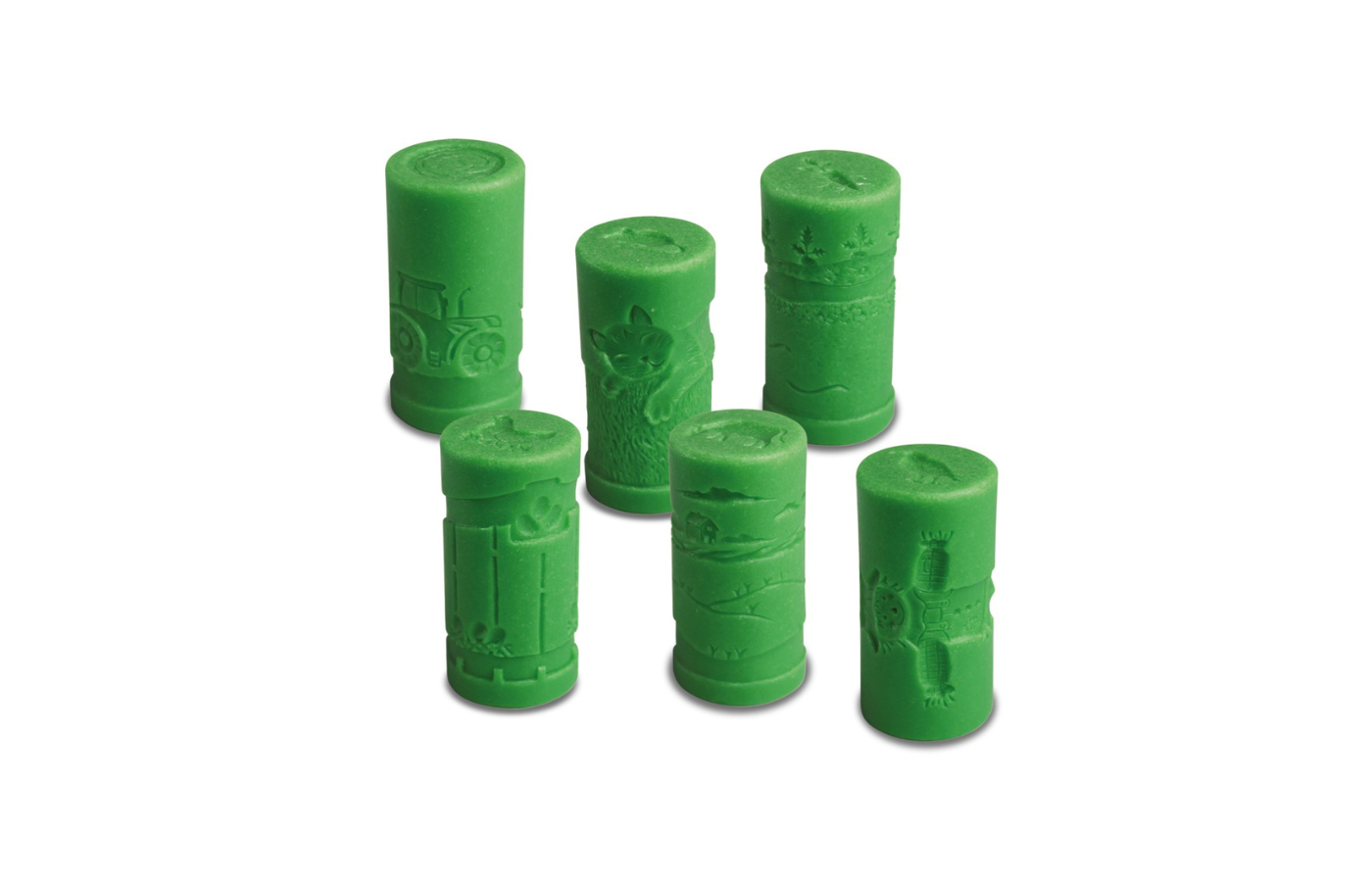Druk en rol met deze rollers in deeg, klei, zand om prachtige scènes te maken.