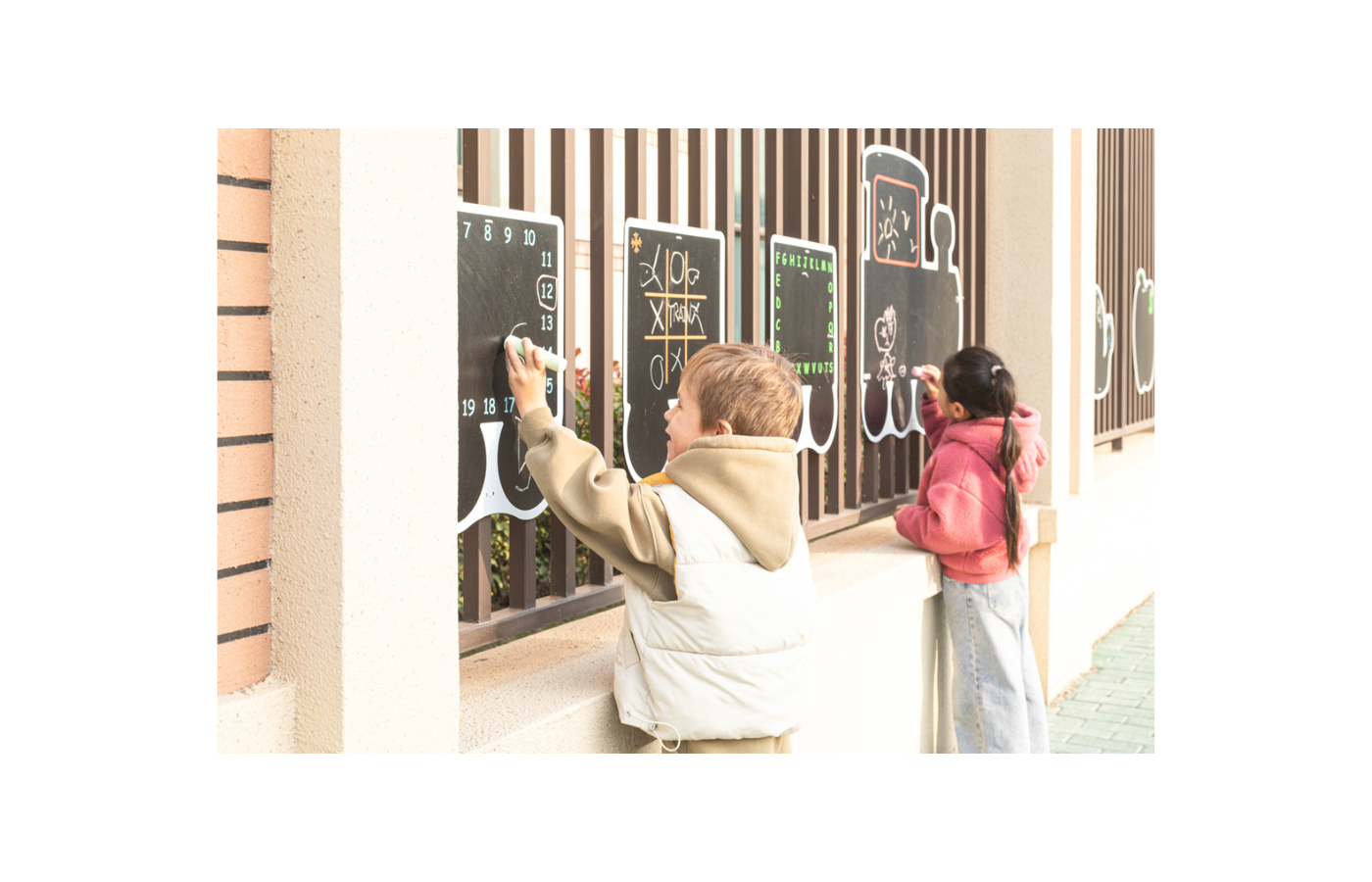 La place, la clôture ou la cour de récréation seront embellies avec ces magnifiques tableaux en craie. Grâce aux trous pré-percés, vous pouvez facilement fixer les tableaux en craie à une clôture. Vous pouvez également les accrocher à un mur.