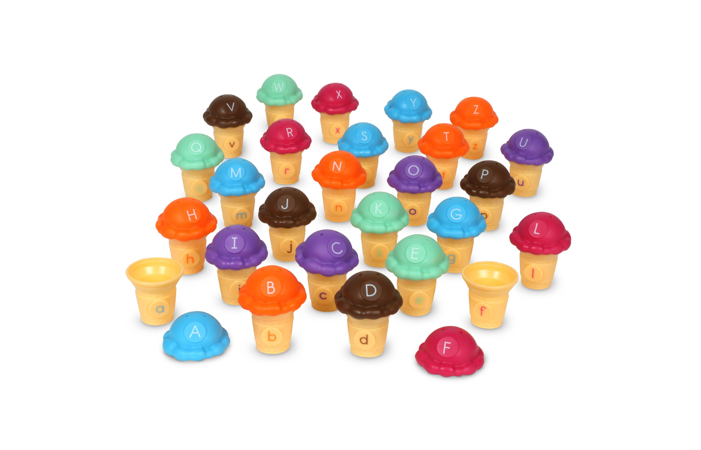 Apprenez les lettres de l'alphabet de manière amusante avec ces glaces en lettres. Trouvez la majuscule et la minuscule et complétez la glace.