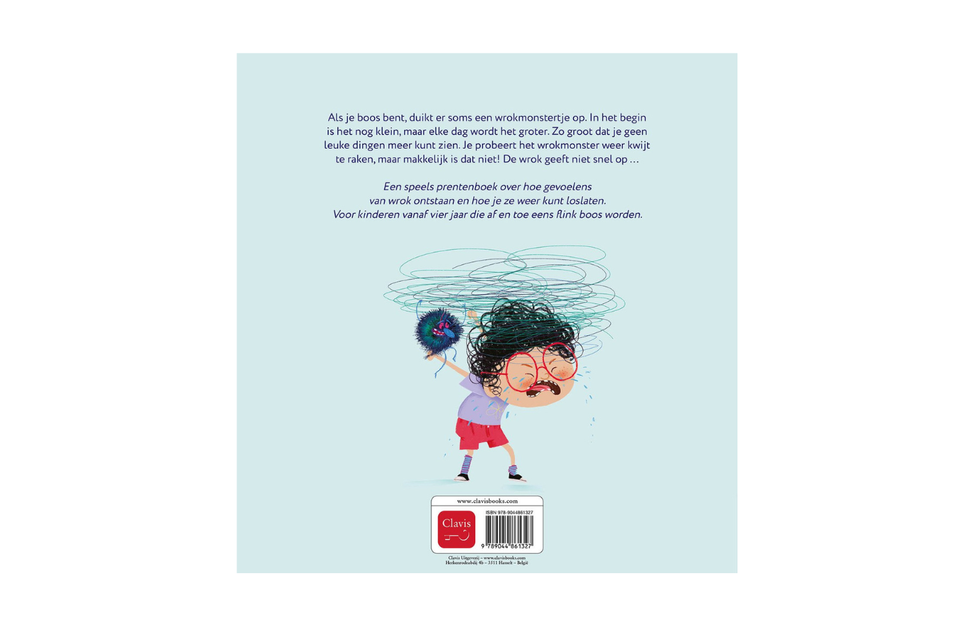 Als je boos bent, duikt er soms een wrokmonstertje op. In het begin is het nog klein, maar elke dag wordt het groter. Zo groot dat je geen leuke dingen meer kunt zien. Je probeert het wrokmonster weer kwijt te raken, maar makkelijk is dat niet! De wrok geeft niet snel op … Een speels prentenboek over hoe gevoelens van wrok ontstaan en hoe je ze weer kunt loslaten.