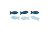 Un sachet de 8 petits morceaux de bois en forme de poisson de couleur bleue. À utiliser comme décoration ou pour le bricolage.