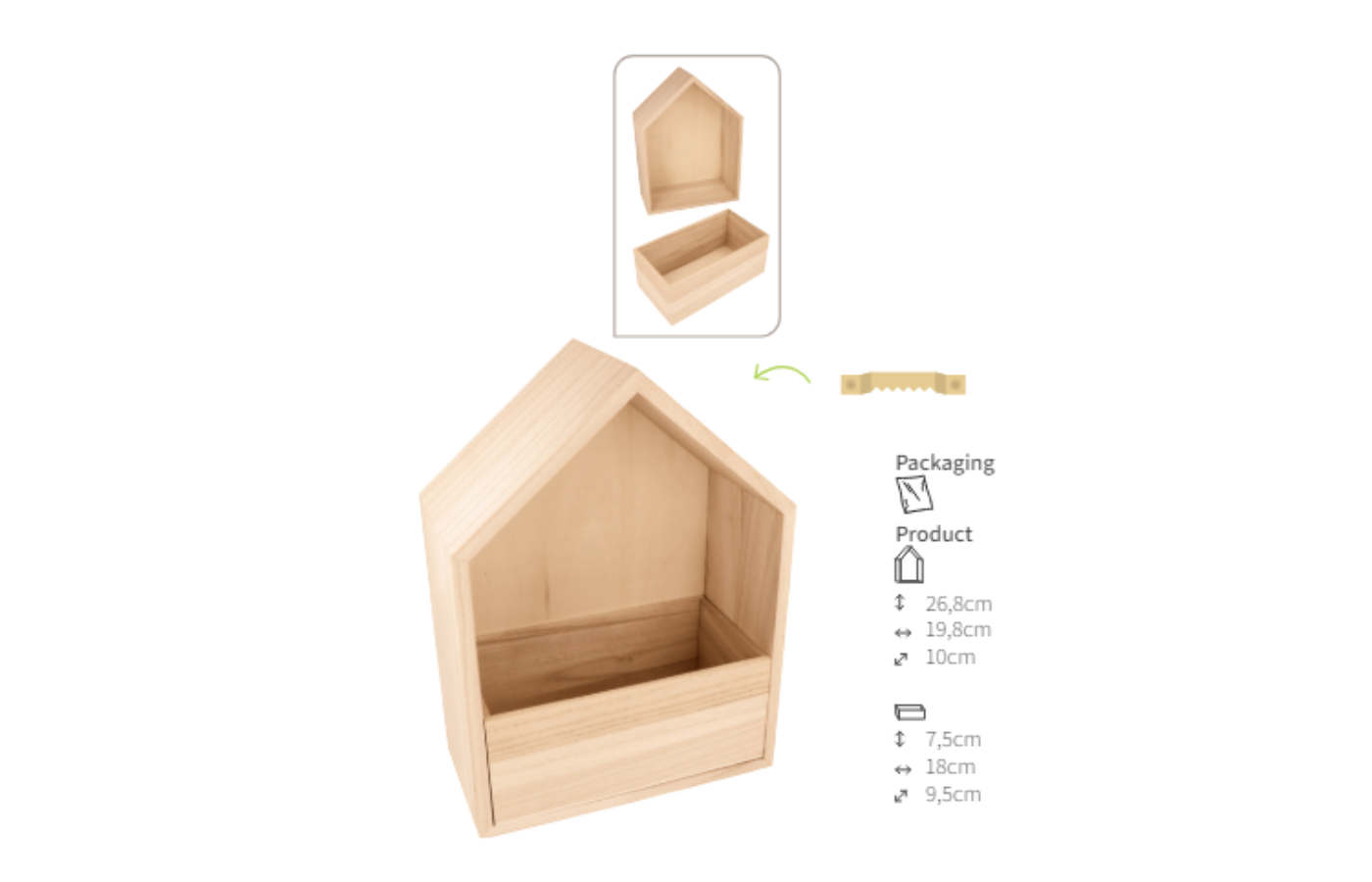 1 (calendrier)maison avec tiroir (ouvert) (dim. 26,8 x 19,8 x 10 cm)