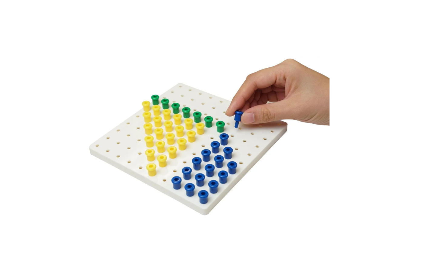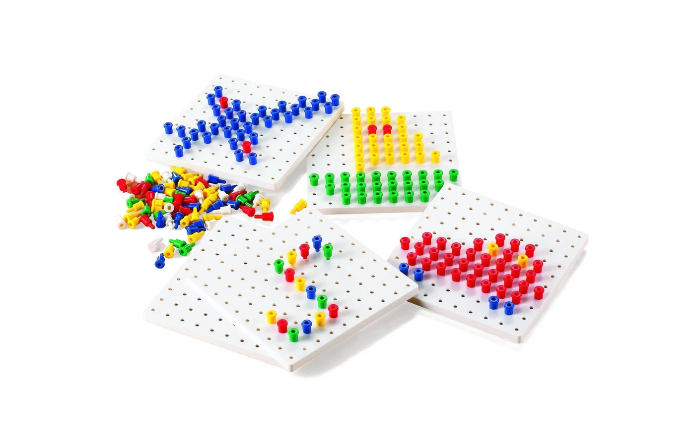 Ensemble coloré d'assiettes et de piquets pour faire les premiers pas dans le domaine du tri, du comptage et des calculs. Les enfants apprennent à copier des motifs et des séries, à travailler dans un plan 2D et 3D, et ils peuvent laisser libre cours à leur créativité !