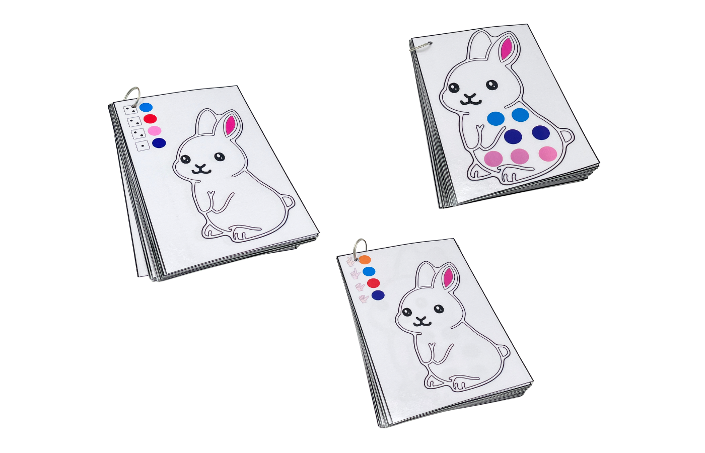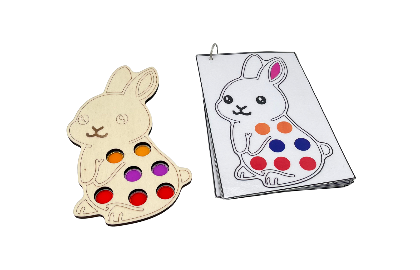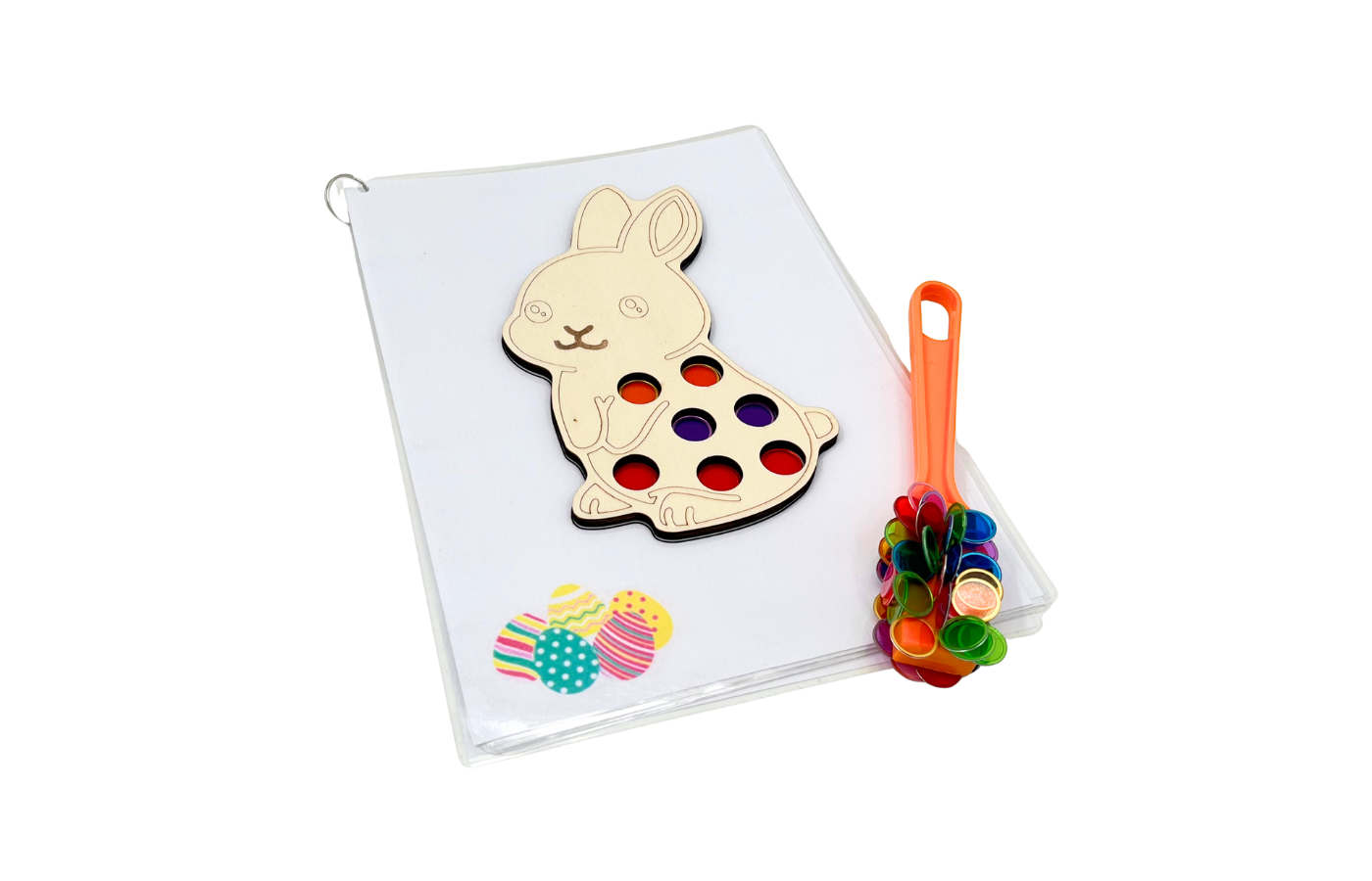 Jeu de motricité fine lié à l'orientation spatiale et aux mathématiques. Les enfants placent les jetons magnétiques dans les trous du lapin en fonction d'une carte de mission. Avec la tige magnétique, les enfants peuvent retirer les jetons du plateau de jeu de manière amusante.