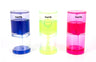 Ensemble de liquide sensoriel cristallin avec de l'huile colorée et de l'eau. Lorsqu'ils sont retournés, le liquide coloré goutte lentement vers le bas. Regardez comment le liquide trouve son propre chemin vers le bas du sablier. Il y a 3 couleurs : rose, vert et bleu.