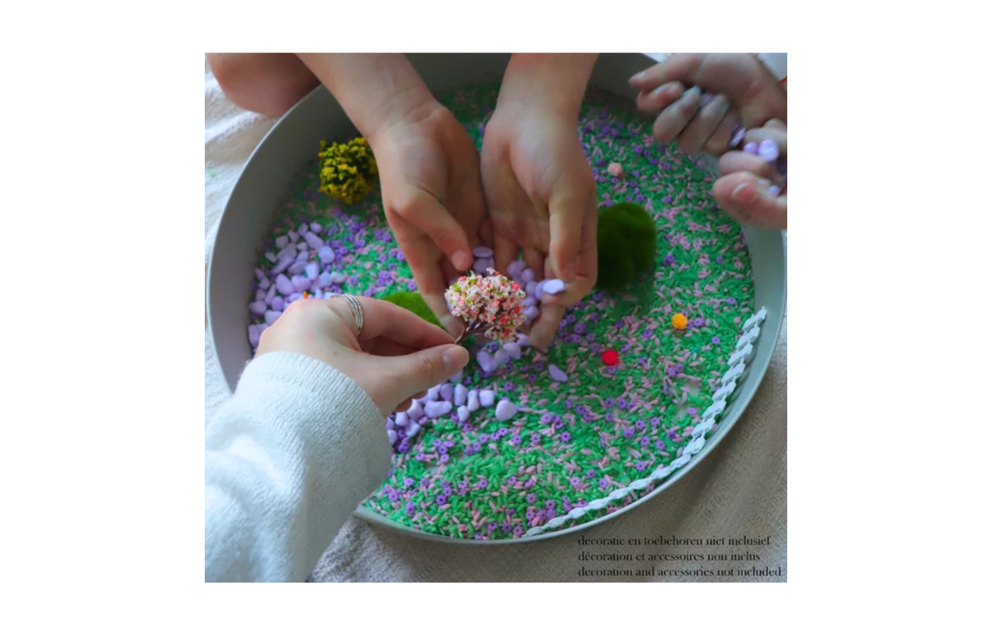 De speel tray is ontworpen voor alle vormen van spel: knoeien, creatief spelen, sensorisch spelen en fantasiespel. Kinderen kunnen er hun eigen magische werelden in creëren, de mogelijkheden zijn eindeloos.