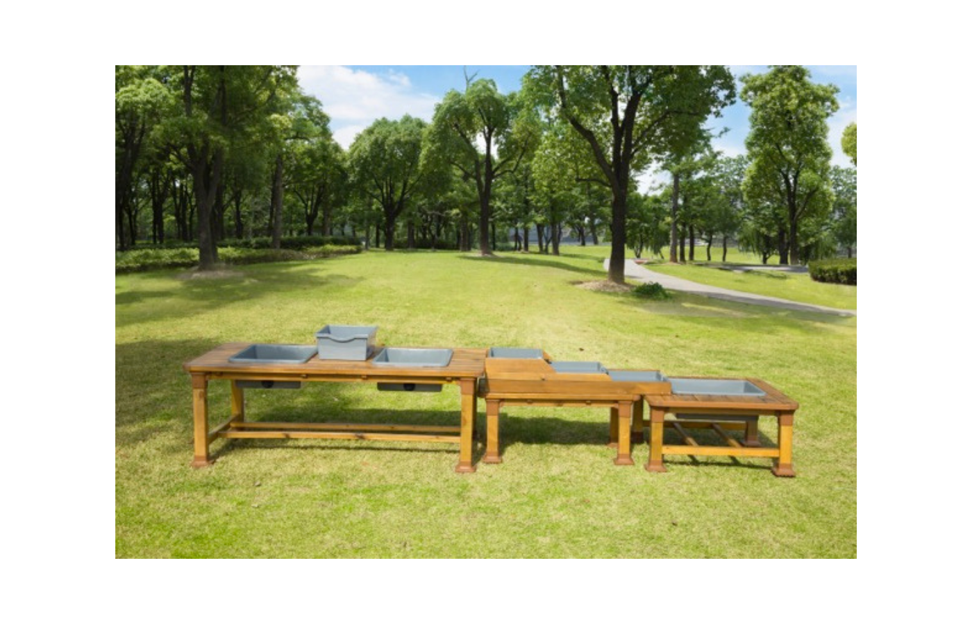 moddertafel 1 (dim. h 56 x l 60 x p 160 cm) - 3 bacs en plastique (dim. 17,5 x 42,5 x 52,5 cm)