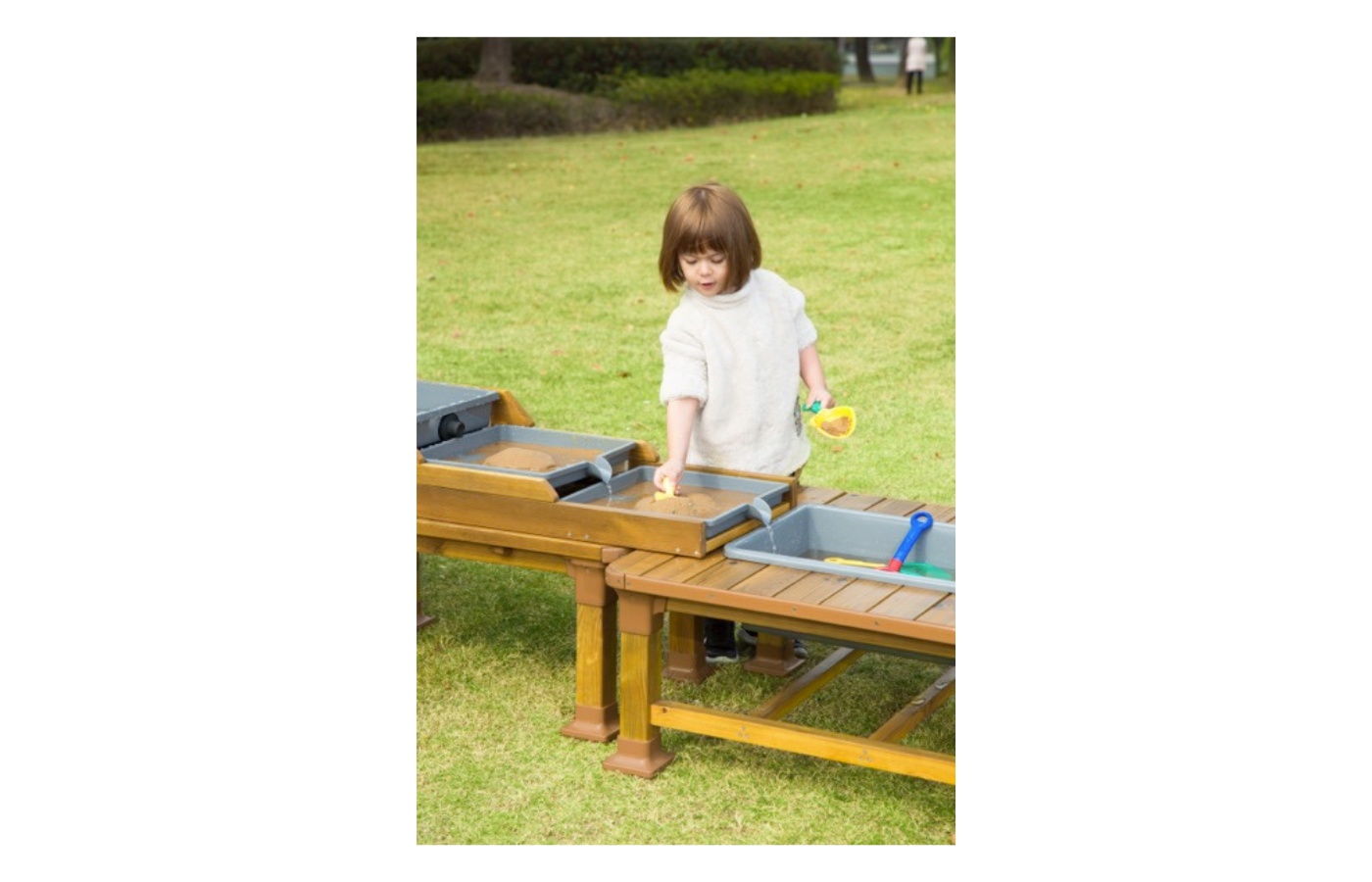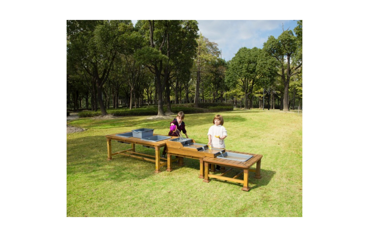 Cette table à boue est composée d'une combinaison de trois tables à boue et aboutit à une rue de jeu qui invite à creuser, verser et barbotter. La première table à boue a deux éviers avec des drains d'eau fermables et un bac en plastique supplémentaire pour le transport. La deuxième table à eau a ces 3 bacs et peut simuler un cours d'eau. La dernière table à boue sert de bac de collecte pour le cours d'eau. La table à boue de haute qualité est fabriquée en bois de pin durable. Livraison partiellement montée, y compris des accessoires de montage complets et des instructions faciles à comprendre.