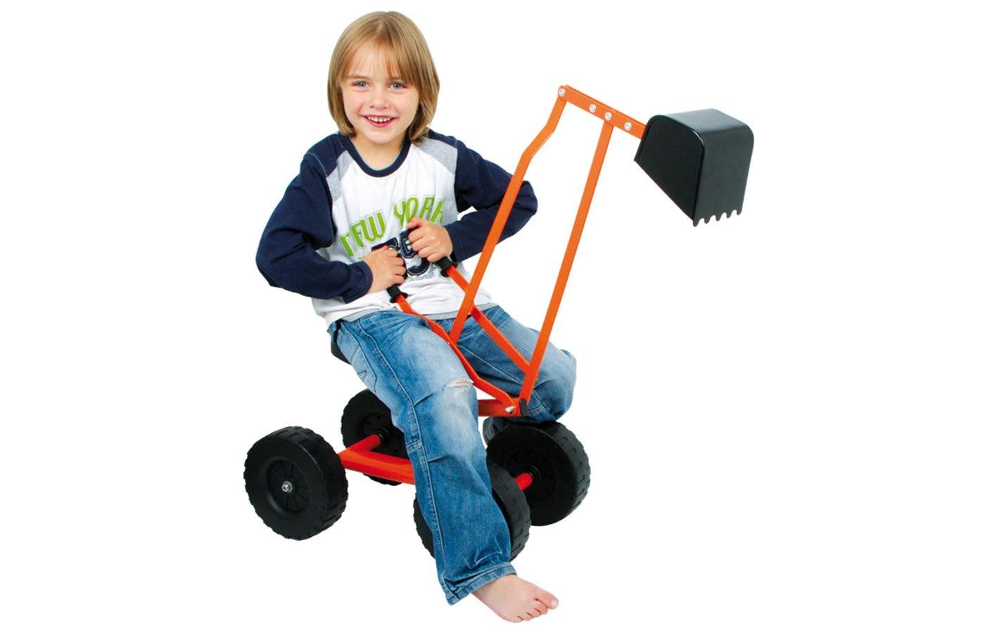 Cette pelle mécanique en métal avec de grandes roues en plastique (Ø 20 cm) est le meilleur outil pour les petits constructeurs ! Un jouet idéal dans le bac à sable ou dans le jardin, rotatif à 360° avec un fantastique siège en forme de cuvette. Très robuste, mais léger !