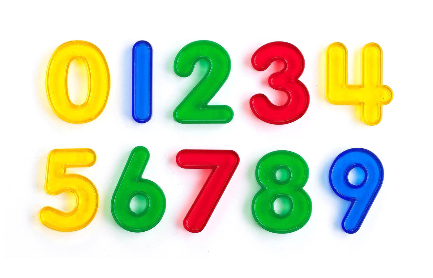 Transparent plastic numbers. Great for caller ID, counting and sequences. Nice material to learn the numbers in combination with a light table.