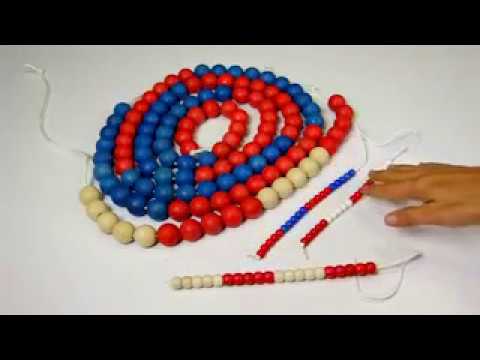 Calculation beads to perform (preparatory) calculation exercises with. The calculation beads have a 5 structure. Choice of: red / white or red / blue. The rope is 45 cm long and the beads themselves are 1 cm in size.