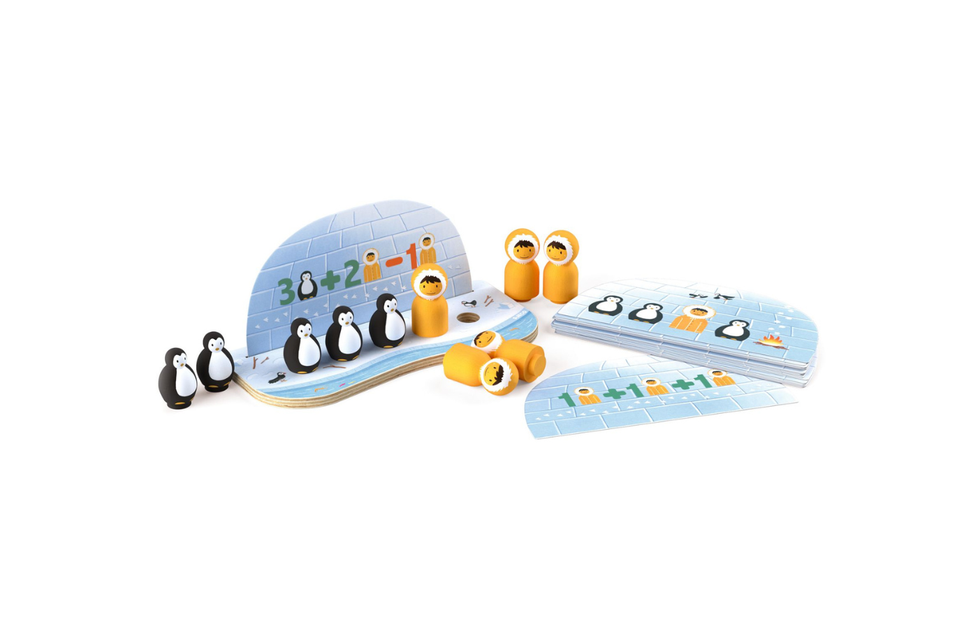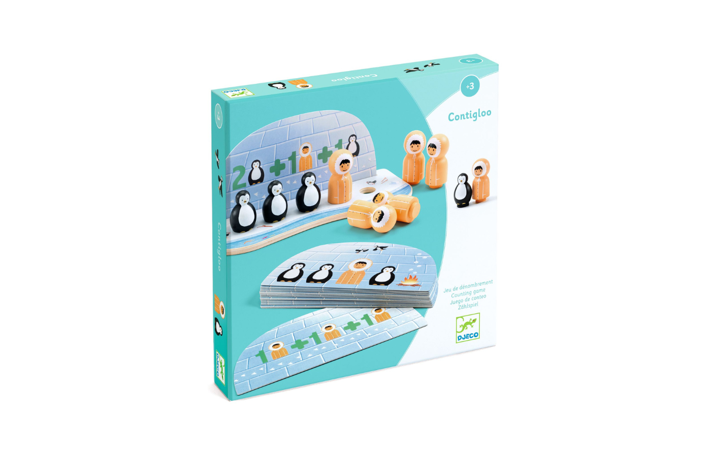 Contigloo is a game to introduce the concepts of "more" and "less". The cards contain instructions and the child places the correct number of pieces on the board step by step. The solution is on the back of the cards! Self-correcting game thanks to the answers depicted on the back of the cards. Easy to use thanks to the wide pawns that stay upright and the slot in the game stand.