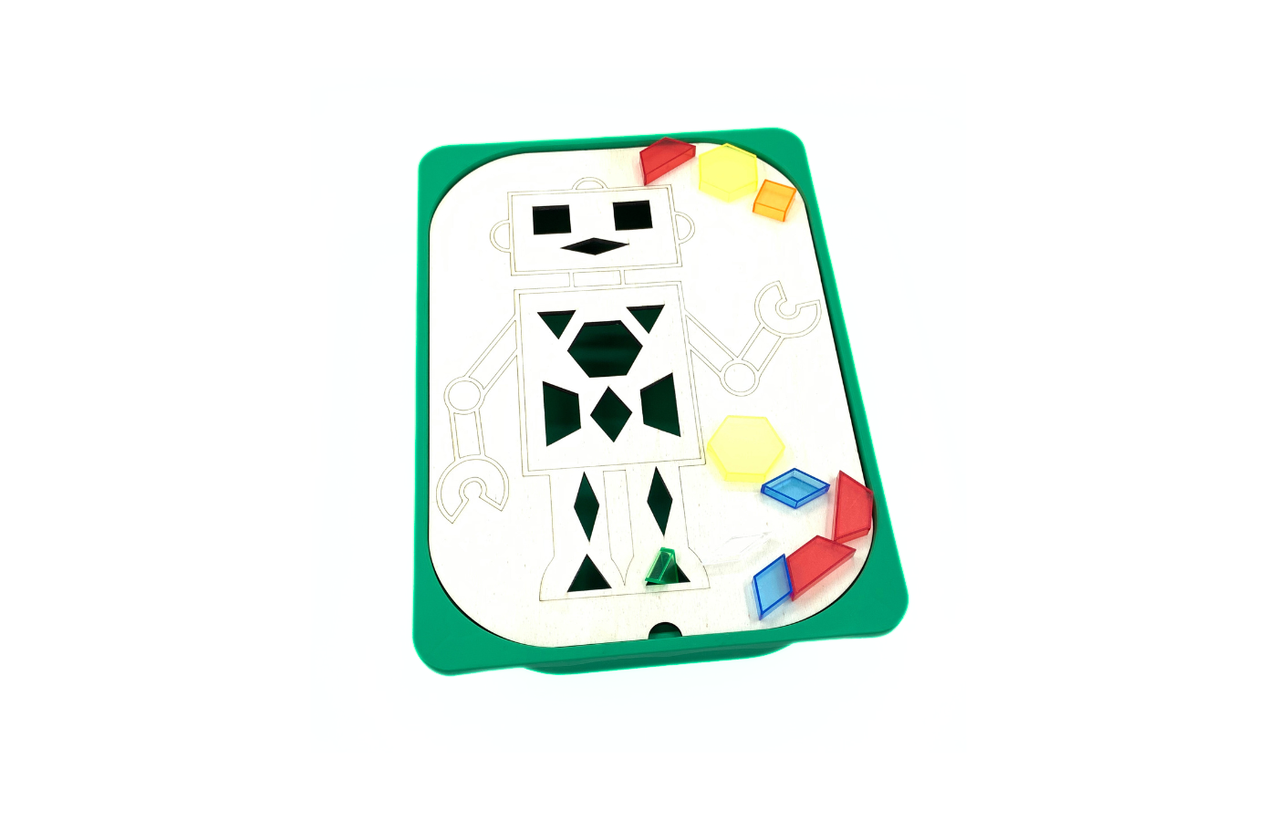 Theme lid (robot patterns) to be used on the well-known Trofast containers from Ikea. Can be combined with pattern blocks , wooden pattern blocks or wooden pattern blocks (Re-Wood) . Stimulate fine motor skills by positioning the pattern blocks in the right place.