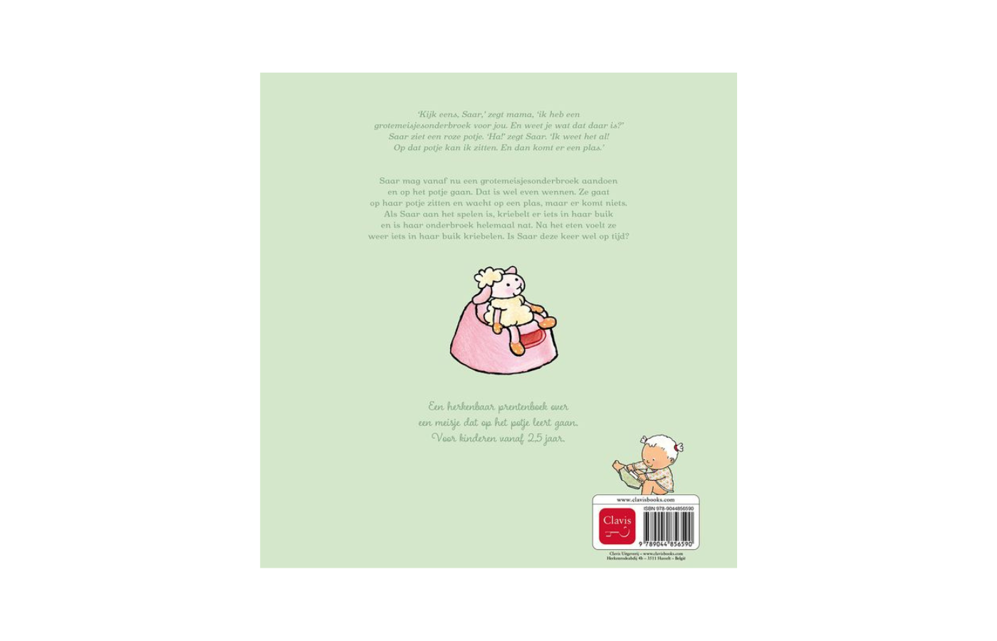"Look, Saar," says Mom, "I have a pair of big-girl panties for you. And do you know what those are?" Saar sees a pink potty. "Ha!" says Saar. "I know! I can sit on that potty. And then a pee comes." From now on, Saar can put on big-girl panties and go potty. It takes some getting used to. She sits on her potty and waits for a pee, but nothing comes. While Saar is playing, something tickles her tummy and her panties are completely wet. After eating, she feels something tickling her tummy again. Will Saar be on time this time? A relatable picture book about a girl learning to use the potty.