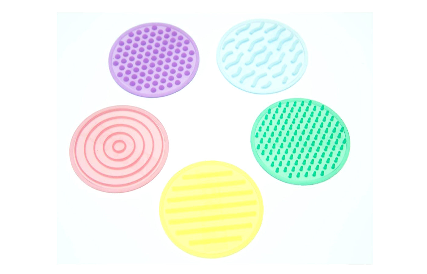 These silicone feel circles are ideal for indoor and outdoor use. Step on the circles or feel them to look for sensory stimuli and to calm down. Or play memory, place the 5 small circles in the bag and feel a circle. Now stand on the matching large circle or vice versa. Stand on a large circle and try to take the corresponding small circle from the bag.