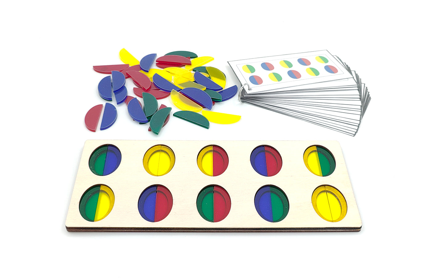 Fine motor play related to spatial orientation and math. The children place the Easter eggs in the holder. This can also be done on the basis of assignment cards. Including 40 colored (half) Easter eggs, made of transparent acrylic.