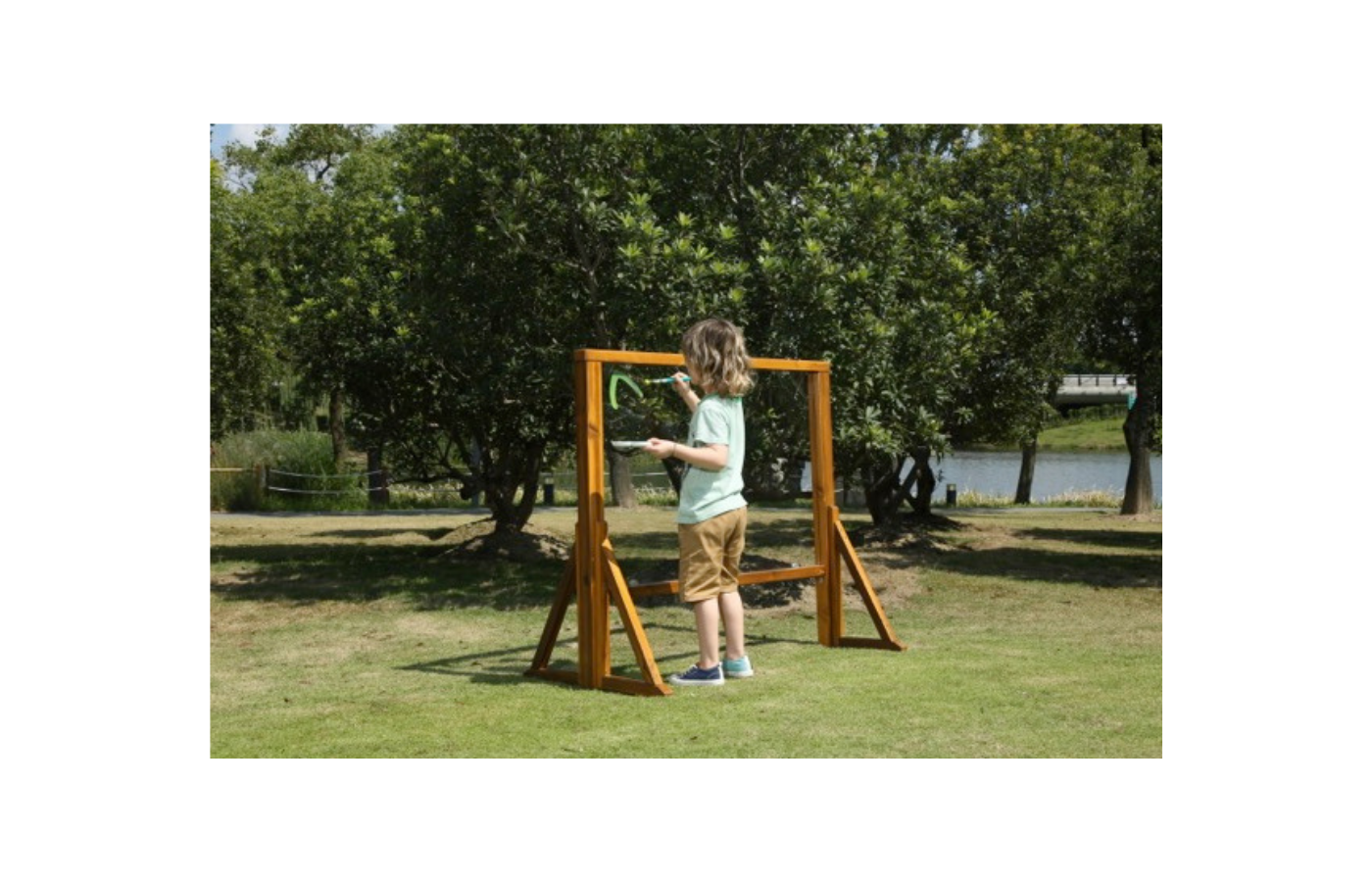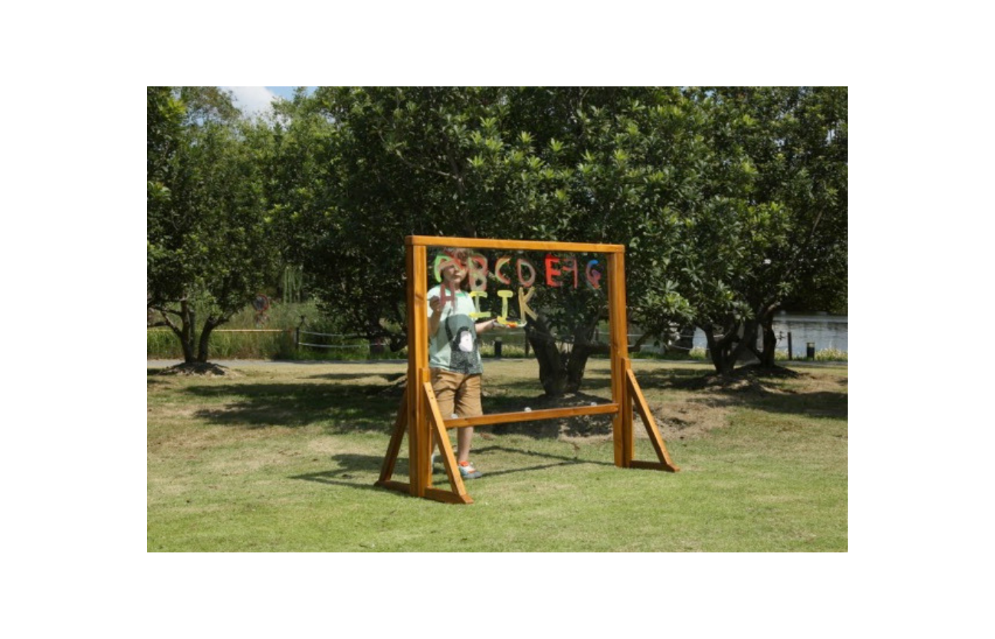 Children can really enjoy themselves with this transparent easel. Painting, writing or drawing on this board is all possible. The board is weather resistant, easy to clean and can be used on both sides.