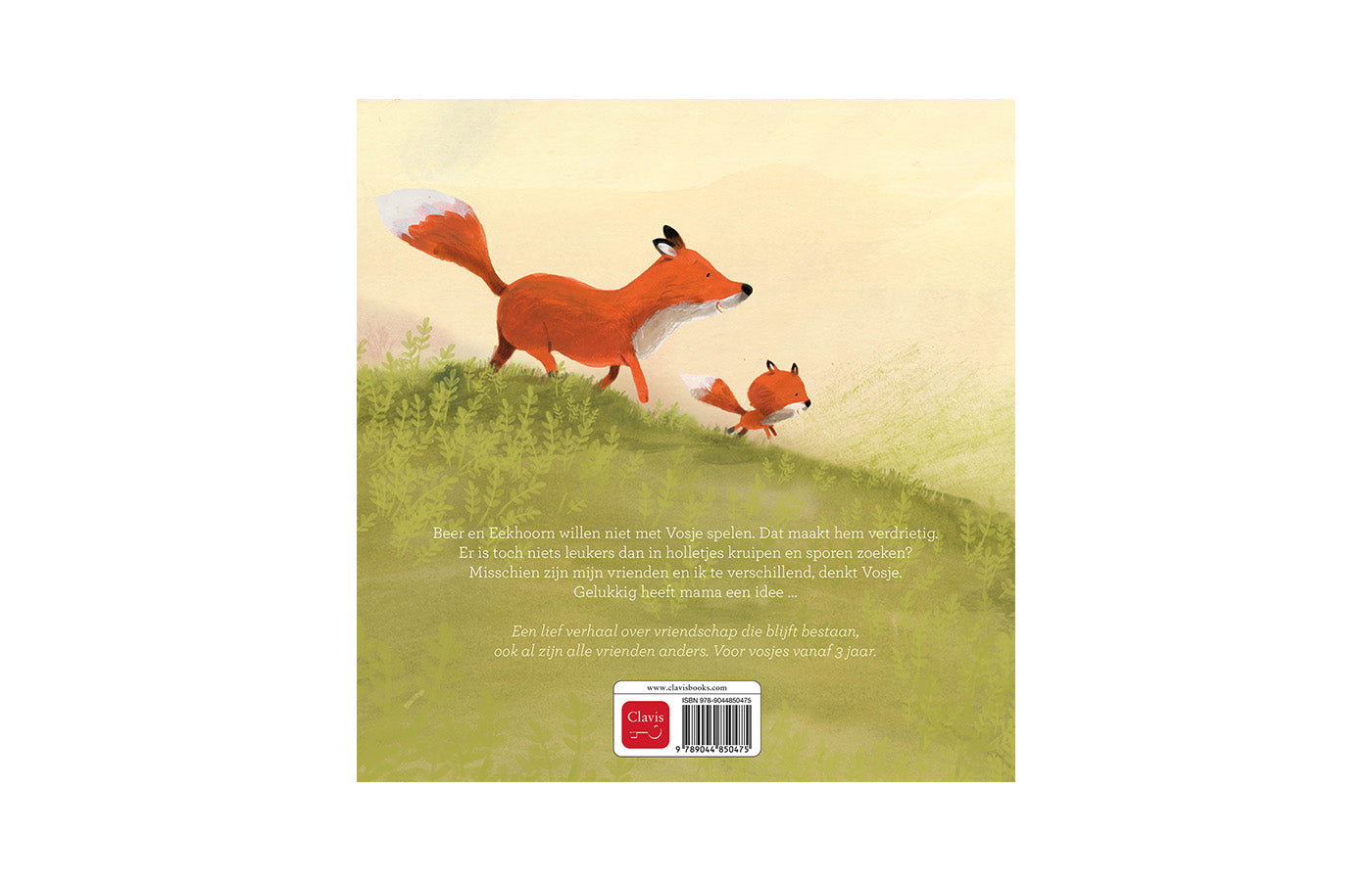 Bear and Squirrel don't want to play with Foxy. That makes him sad. There's nothing more fun than crawling into holes and looking for traces, right? Maybe my friends and I are too different, Vosje thinks. Fortunately, mom has an idea… A sweet story about friendship that lasts, even though all friends are different.