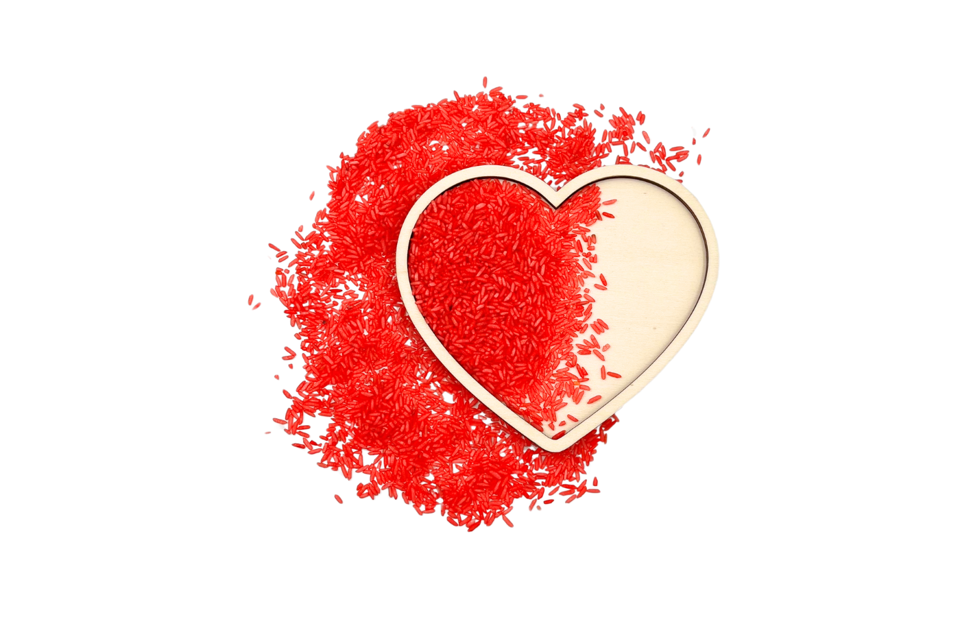 Filling mold or play tray in the shape of a heart. Perfect to fill with dry materials such as play rice, chickpeas, fine sand, ... and to use in the Valentine's theme.