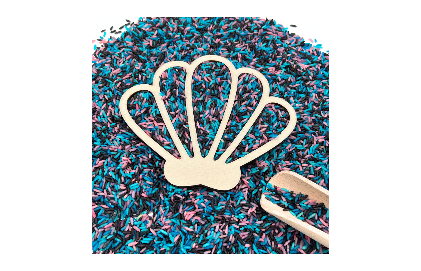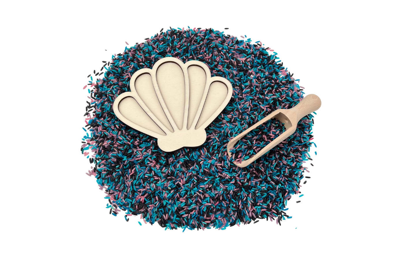 Filling mold or play tray in the shape of a shell. Perfect to fill with dry materials such as play rice, chickpeas, fine sand,...