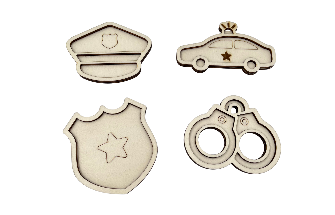 4 filling shapes - professions - police (dimensions fire truck 7.5 x 13 x 0.8 cm)