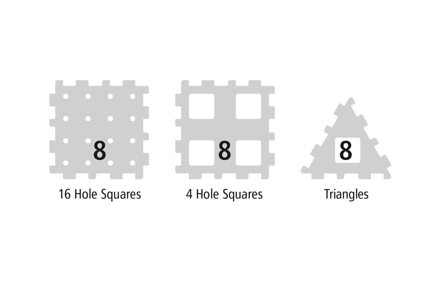 Playfully explore shapes, space, and collaboration with this colorful Polydron set. The pack includes squares (2 designs) and equilateral triangles in 4 cheerful colors.