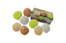 The set contains eight stones: acorn, dandelion seed head, feather, pine cone, snail shell, spider web, sycamore leaf and sycamore seeds.