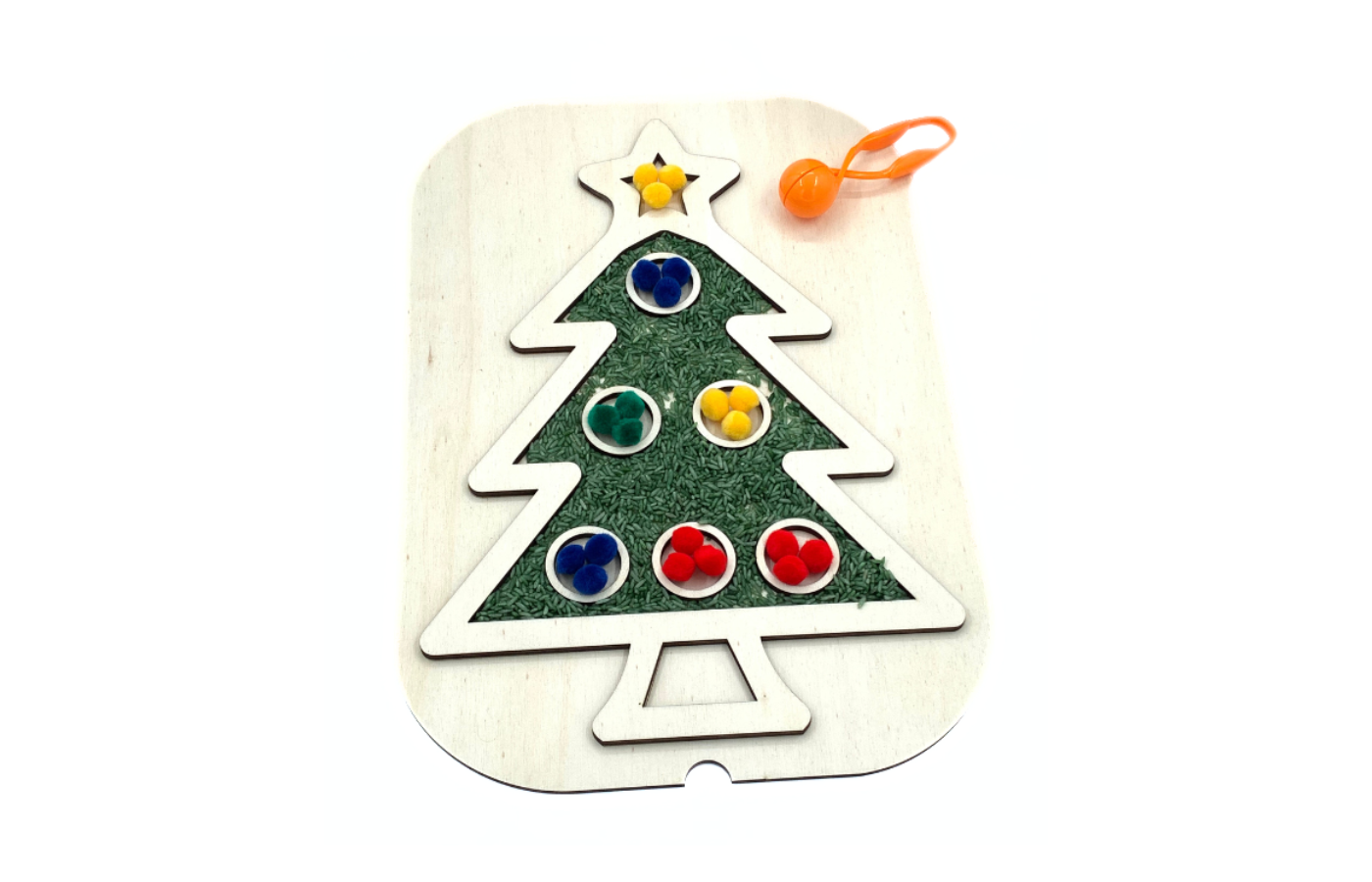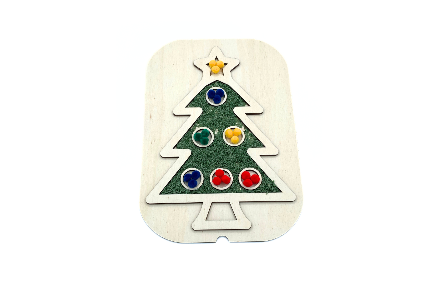 Multifunctional sensory theme lid (Christmas tree) for use on the well-known Trofast containers from Ikea. Fill the Christmas tree with sensory material such as play rice of playfoam pluffle and give the Christmas baubles a cheerful color.