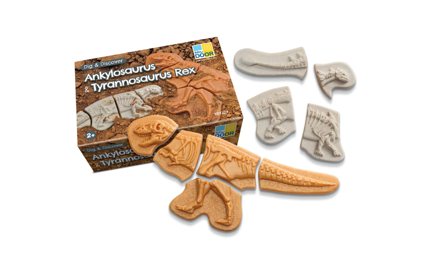 Fossil hunters will love these sturdy, tactile skeleton pieces that fit together to create two iconic dinosaurs: the mighty Tyrannosaurus Rex and the armored Ankylosaurus. Made from a durable stone blend, these fossils are perfect for burying in sand or soil so kids can dig up and piece them together, developing observation, spatial reasoning, and critical thinking skills.