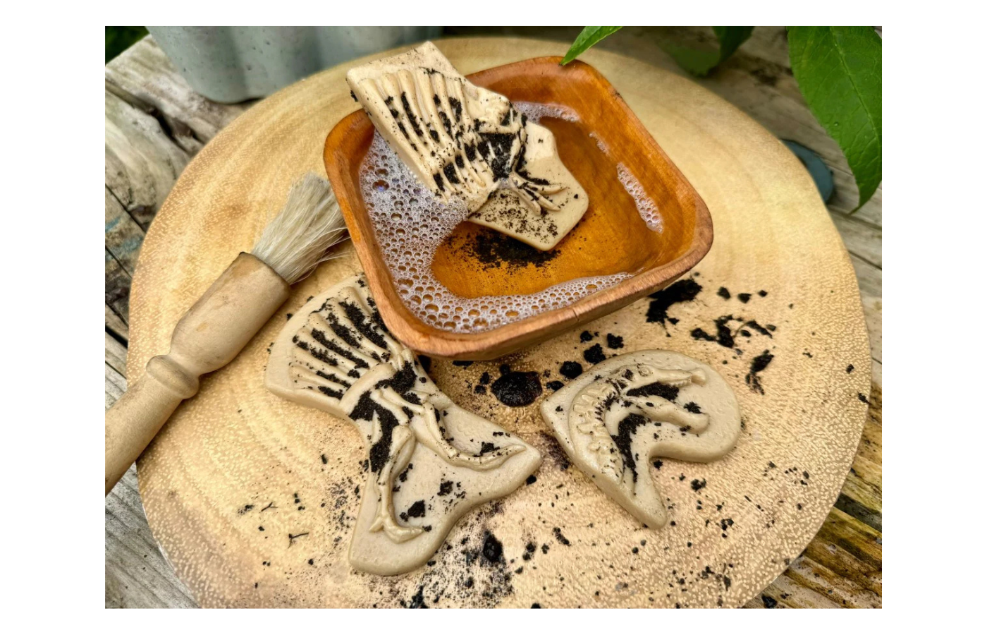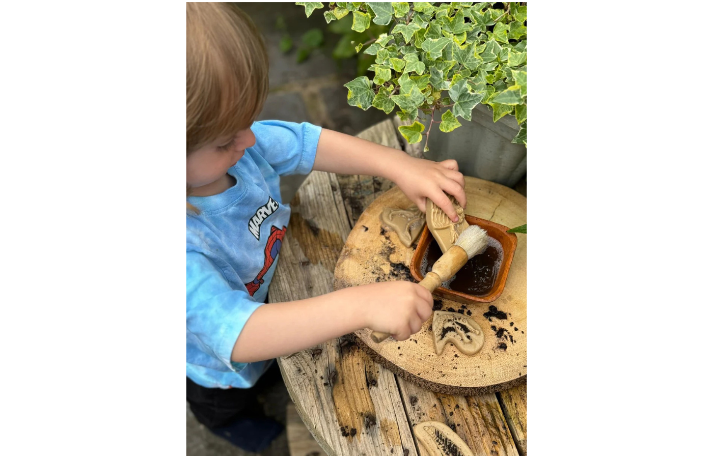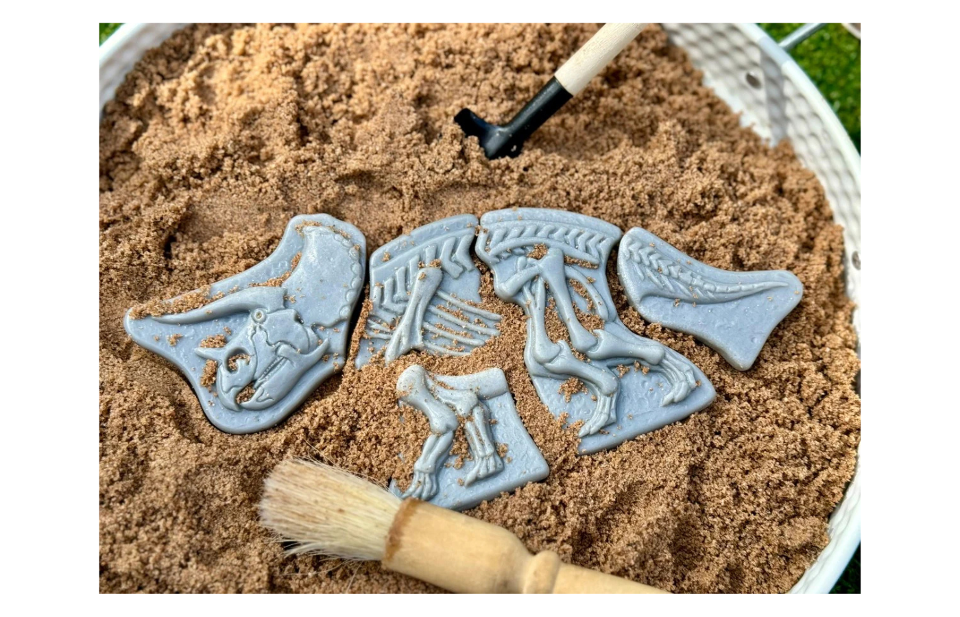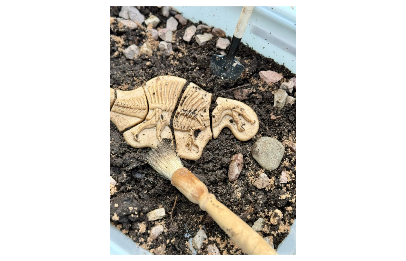 Children can make impressions of the skeletons in play dough or (kinetic) sand and explore the different textures and shapes of the impressions.