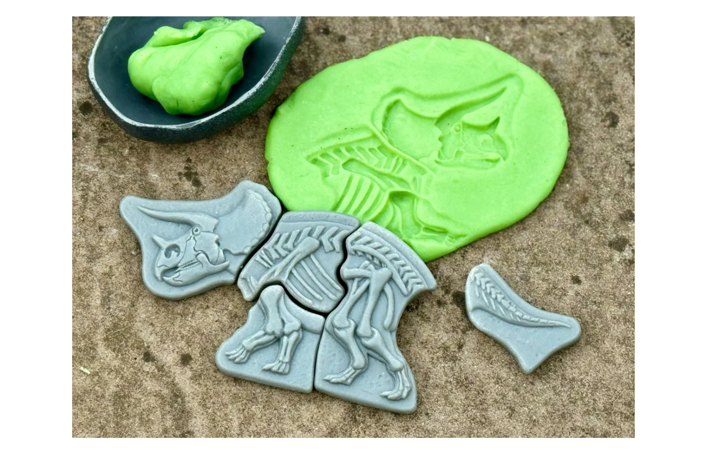 Embark on a prehistoric adventure with these two captivating dinosaur skeleton puzzles: the three-horned Triceratops and the fearsome Spinosaurus! Made from a durable stone blend, these sturdy, tactile pieces are built to withstand countless digs in sand or dirt. As kids unearth each piece, they’ll hone their observation skills as they pay close attention to shapes and details that will help them piece the puzzle together.