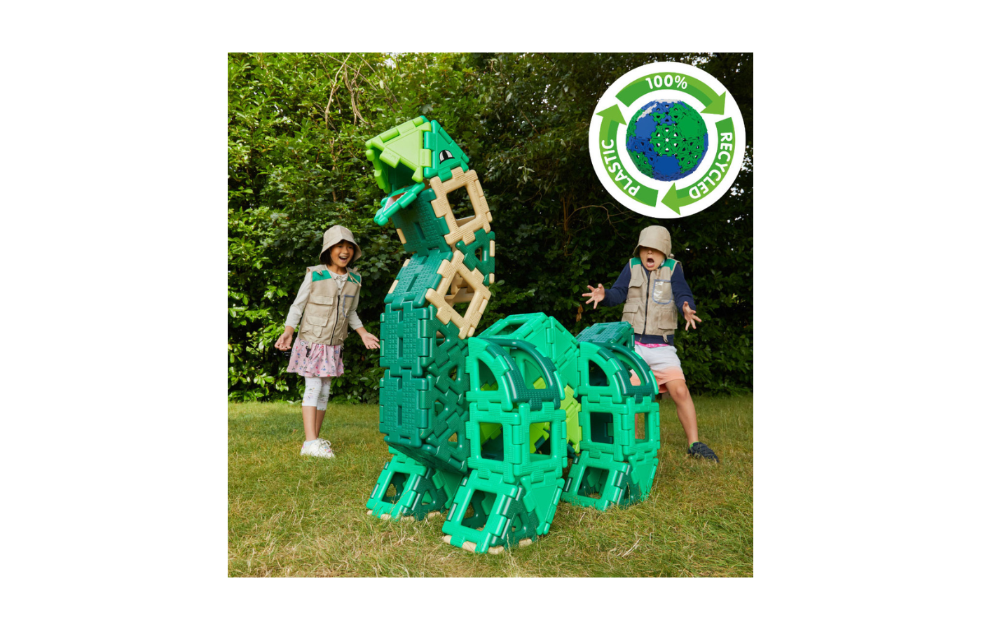 The Giant Polydron dinosaur set is ideal for toddlers, preschoolers, and elementary schoolers. With squares and triangles in shades of green, children playfully explore 2D and 3D shapes. Kids can build up to five unique dinosaurs and bring their own adventurous dinosaur world to life.