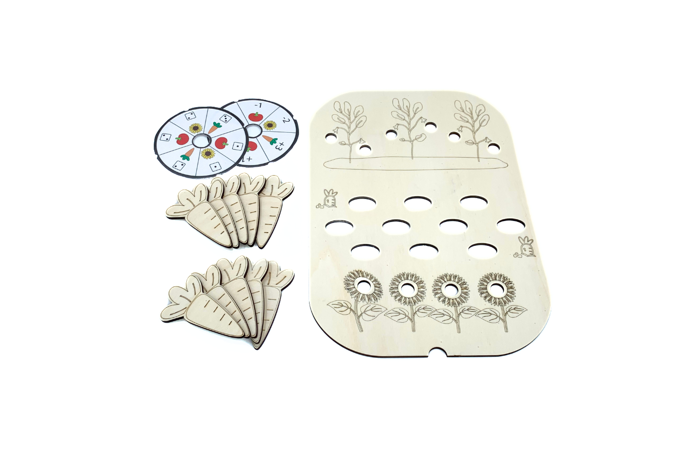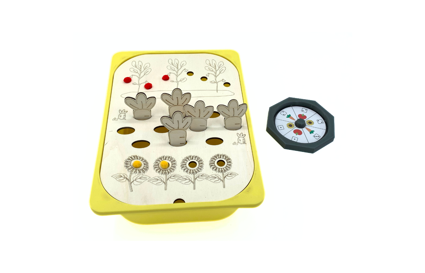 Stimulate fine motor skills by placing pompoms on the vegetables. The pompoms can then be pushed through the holes if necessary.