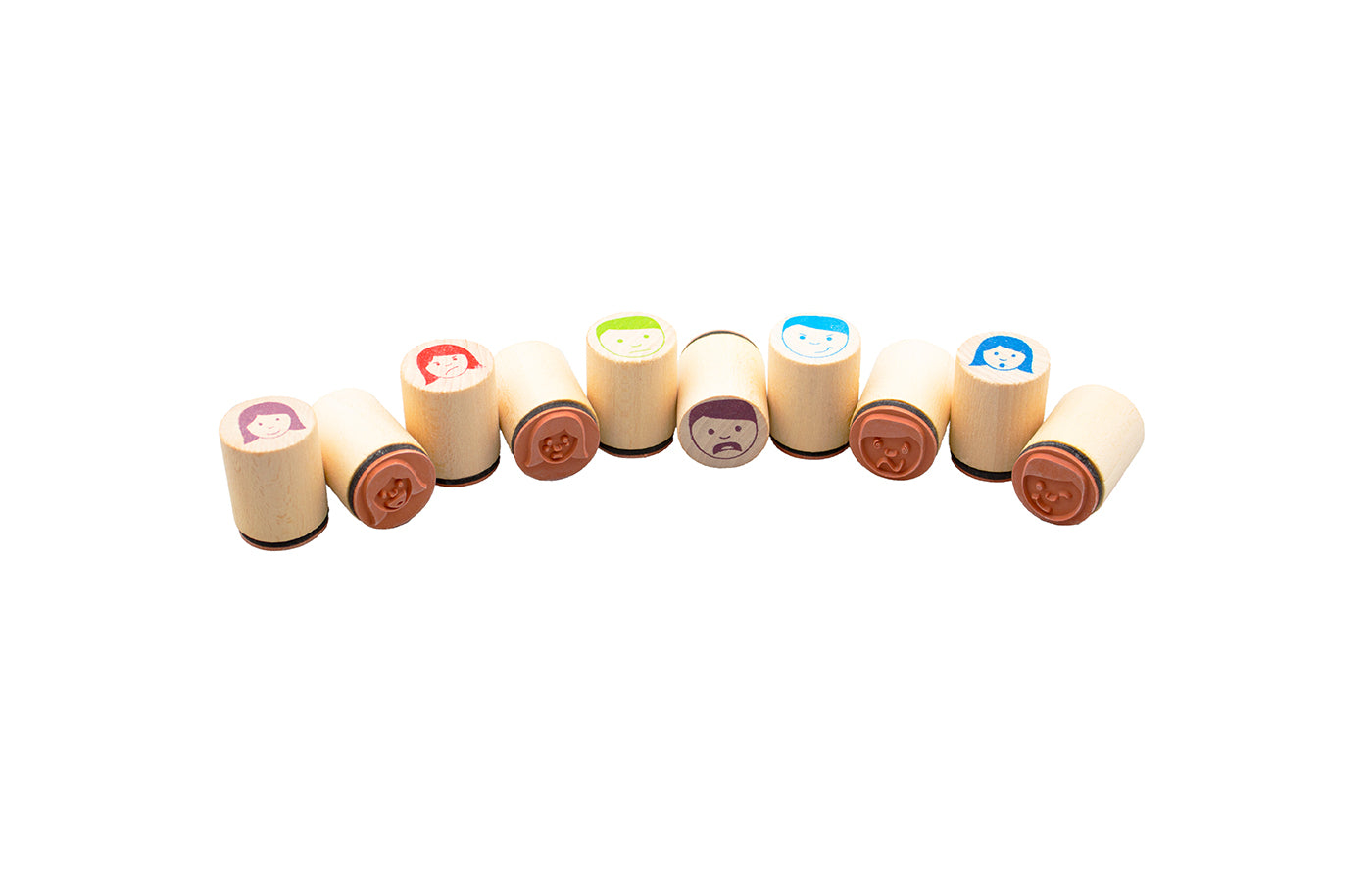 Set of 10 different stamps with emotions. The stamps are made of sustainable wood and have a rubber stamp. Stamp pad/ink pad not included.