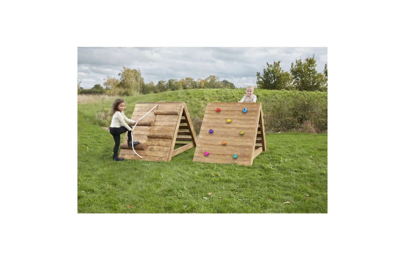 Meet these 2 climbing frames, perfect for turning your outdoor space into an adventure course for eager explorers. Featuring two different climbing frames (one with a sturdy rope and the other with climbing stones), this set offers a great combination of strength building, coordination and pure physical fun. Whether they’re racing to the top or pretending to conquer a mountain, kids will get a full workout as they build their confidence and teamwork skills, while also promoting their physical development.