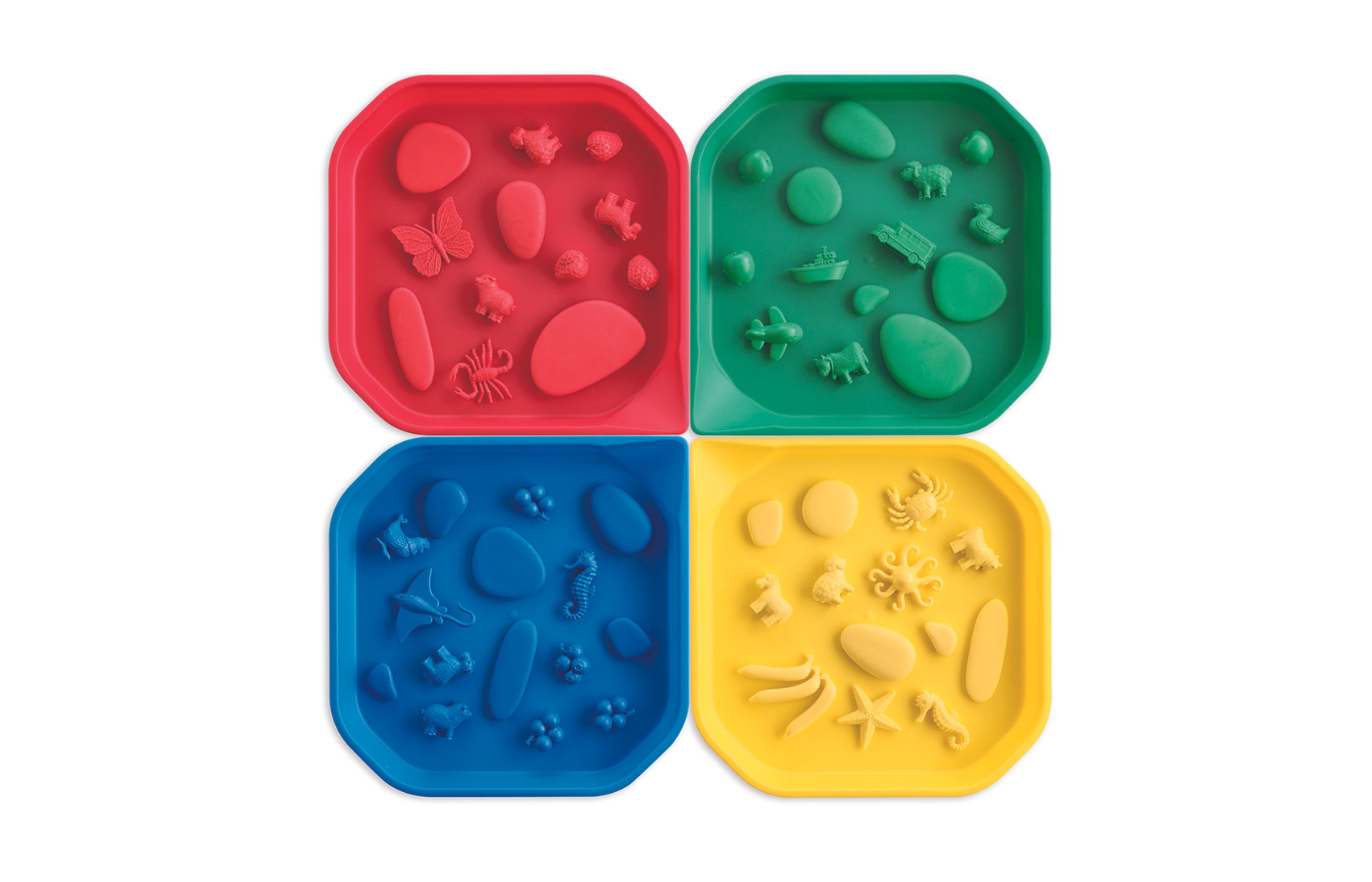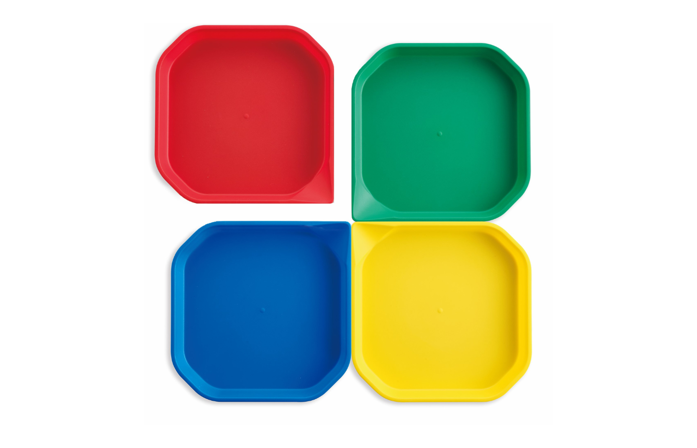4 activity trays - Messy Tray (red, yellow, green and blue) (dimensions: 25 x 25 x 2.5 cm)