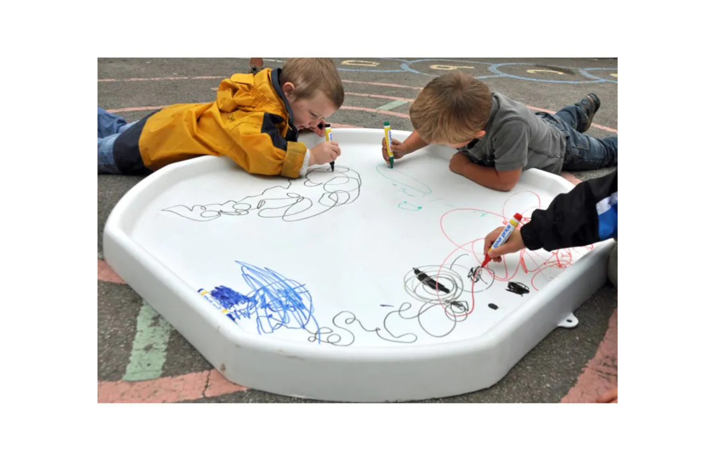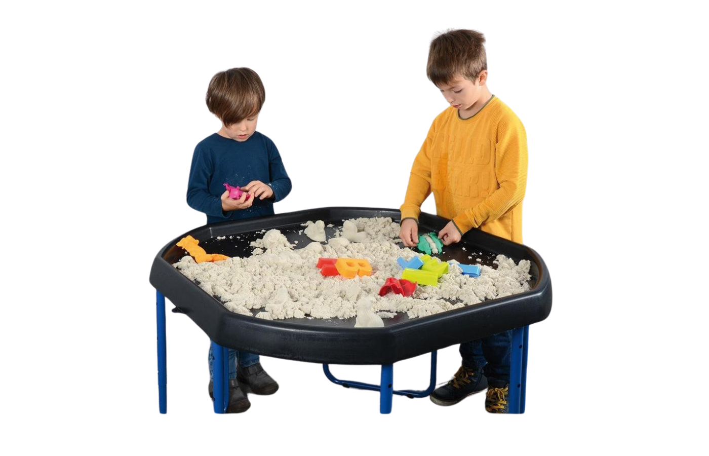 This discovery table (Tuff Tray) can be placed on the floor or table. With the high rim, the sand, stones, sensory balls, water, ... easily remain in the table. Also very suitable to use with it kinetic sand. The discovery table can be used with the matching stand. The stand is adjustable in height. The stand and the discovery table are 2 separate products.