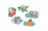 This fun vehicle themed beginner puzzle consists of 5 different puzzles consisting of 3, 4, 5, 6 and 8 pieces respectively. They are nicely illustrated and come in various fun themes.
