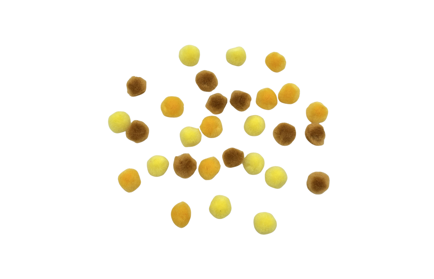 30 gekleurde pompons (geel, oranje en bruin)