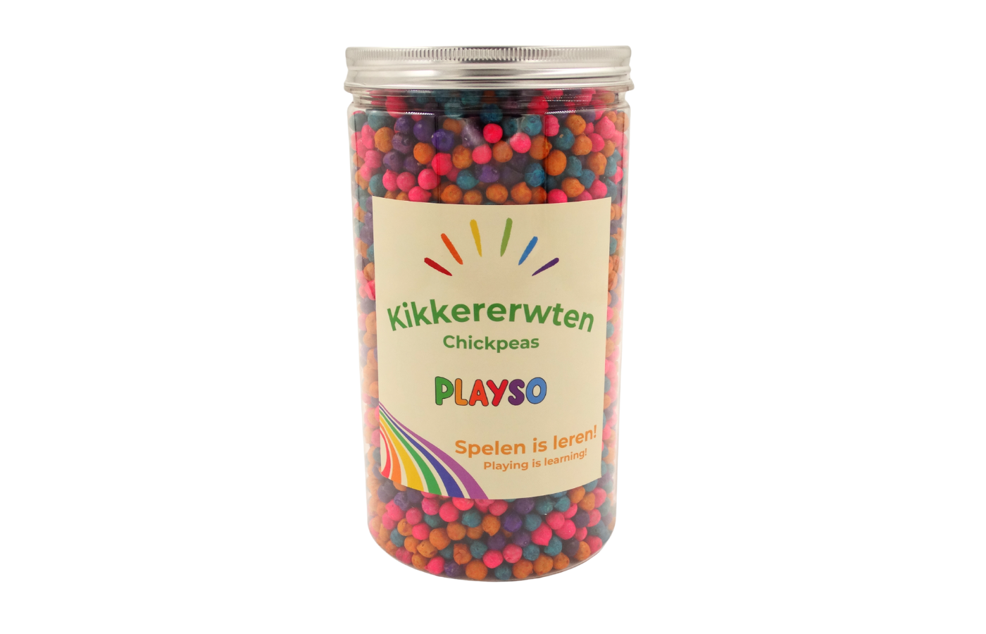 Deze gekleurde kikkererwten zijn een echte topper voor sensorisch spel, telactiviteiten en open-einde spel. Dankzij hun vrolijke kleuren en fijne textuur prikkelen ze de zintuigen én de fantasie van kinderen. Perfect voor kleine handjes om te voelen, scheppen, sorteren en ontdekken!