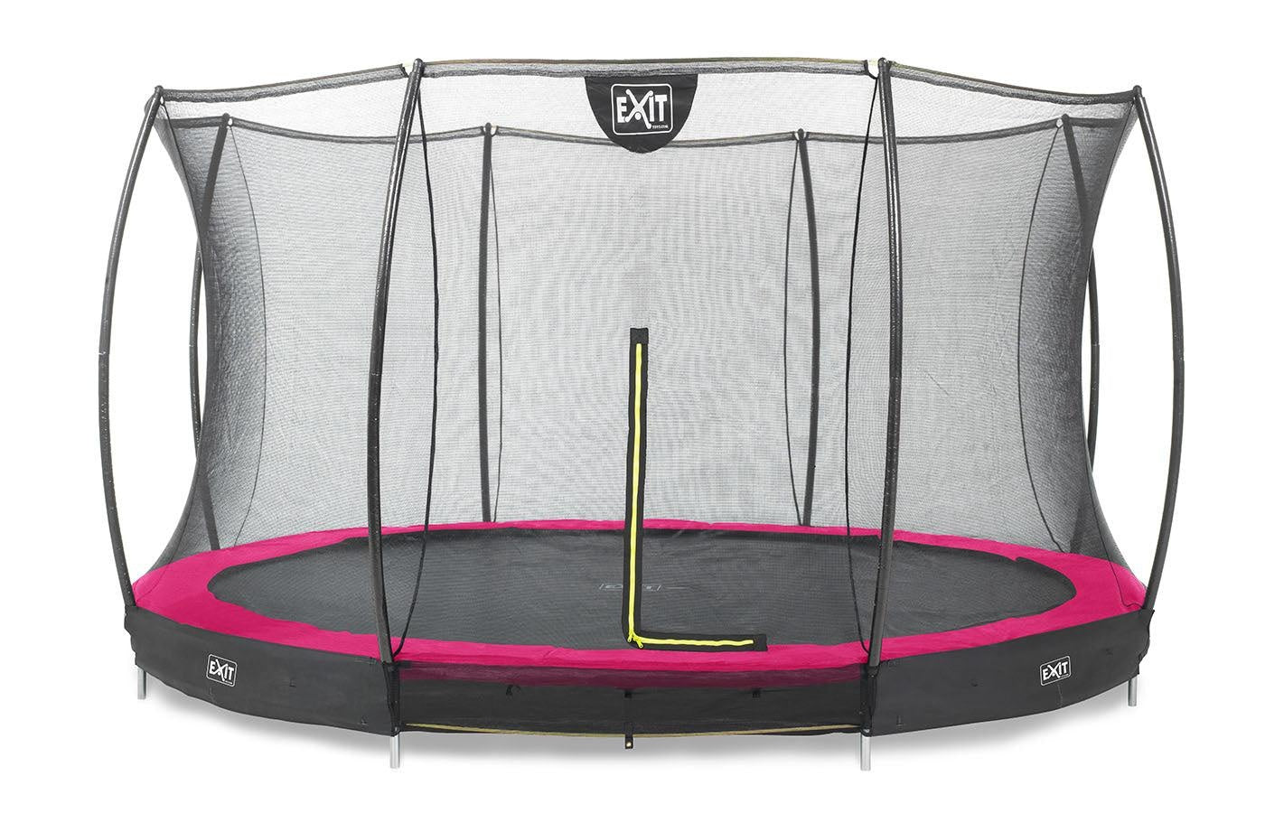 This inground trampoline is a round trampoline with a protective edge. You dig a hole in the ground where the trampoline is used for a beautiful and safe result. The safety net that is supplied has curved uprights so that the net is taut. This way the children can jump safely and they cannot fall off.