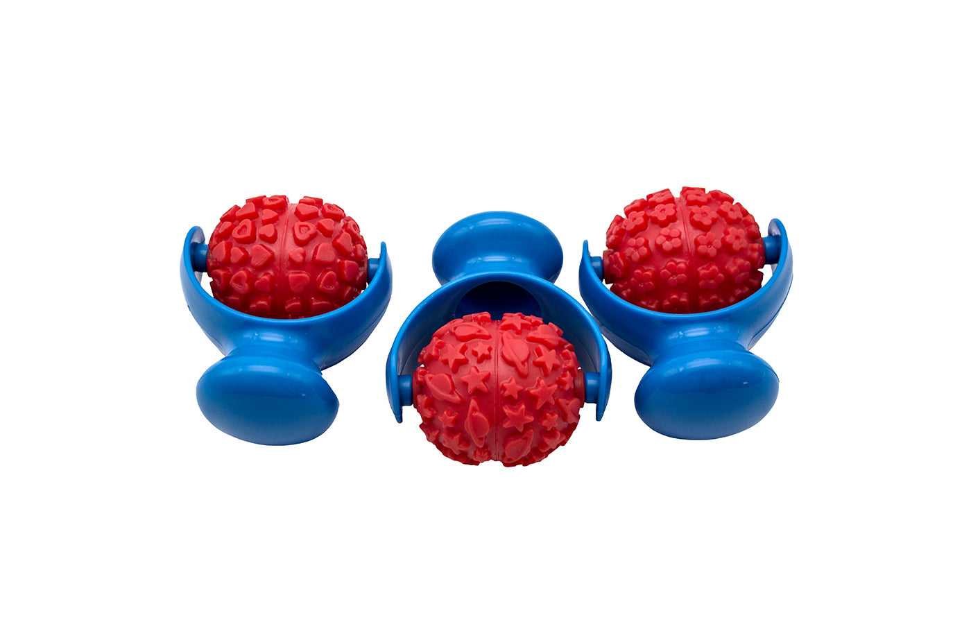 Set of 3 ball rollers with different patterns (stars and planets, hearts and flowers), suitable for making impressions in play dough, plasticine, clay and sand and discovering which patterns you can make with them. The rollers are very durable and fully washable for repeated use.