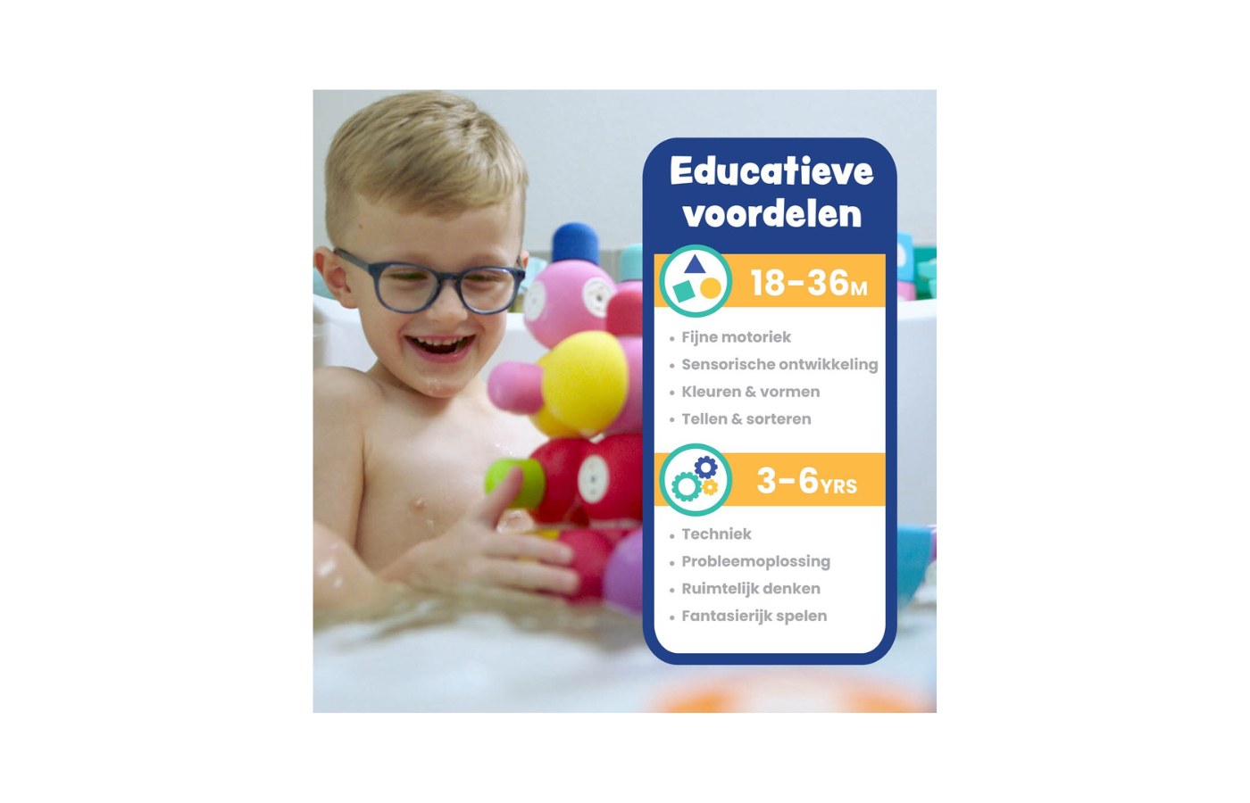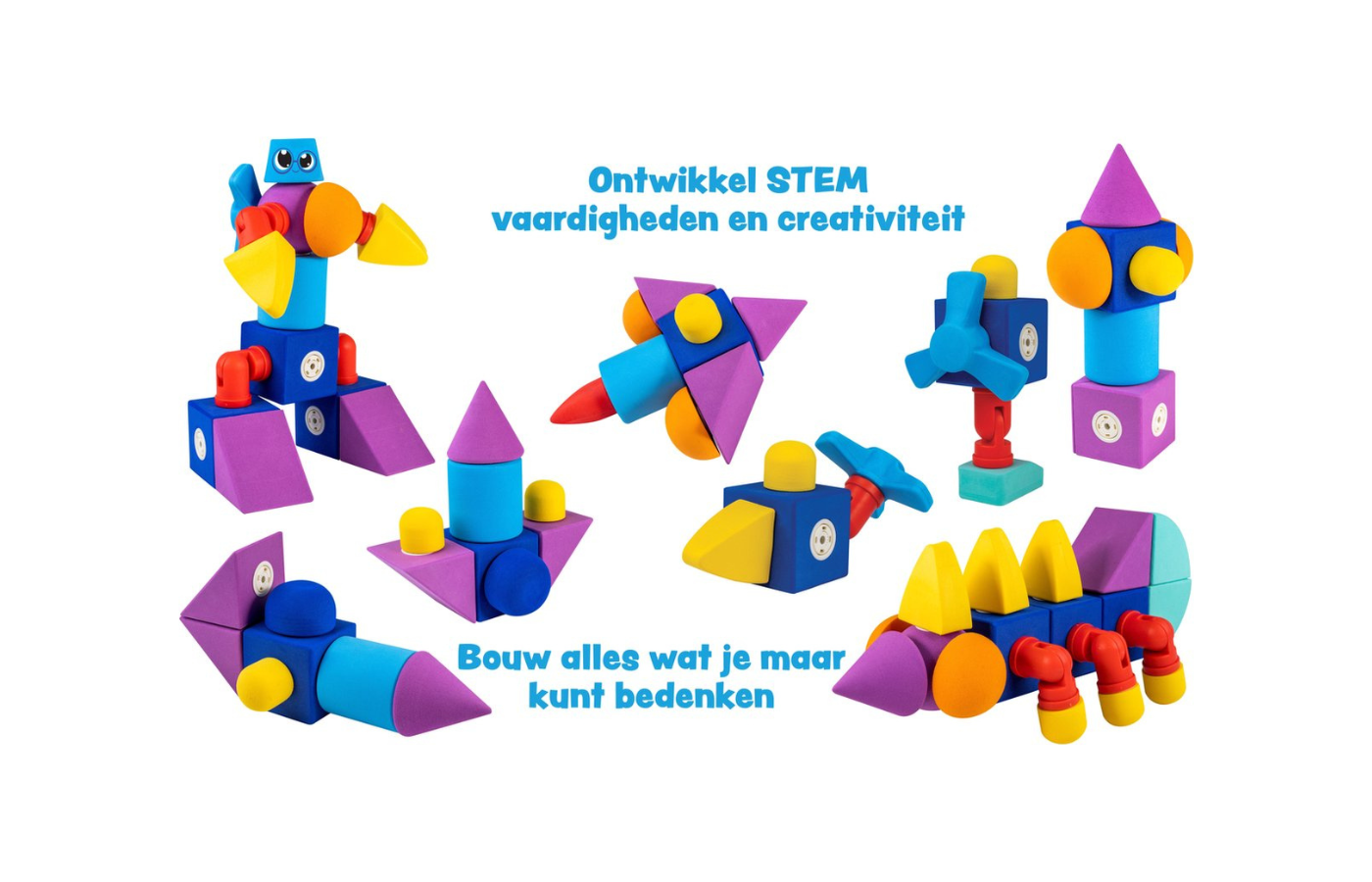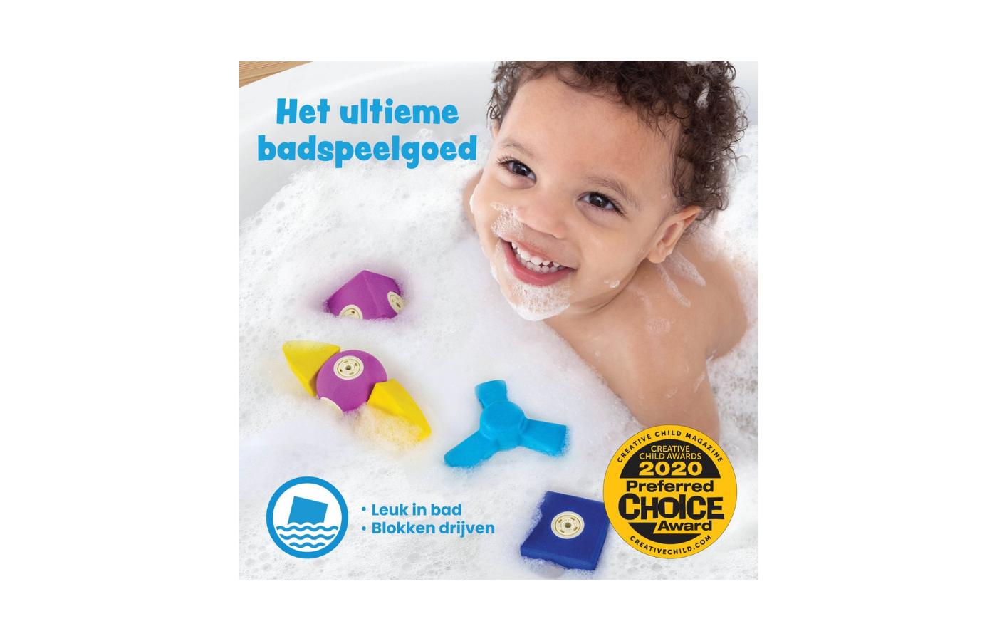 With these soft magnetic foam building blocks, children can build more creatively than ever before. The innovative magnet system magically connects the blocks together every time. The building blocks never repel each other and offer endless play possibilities! The foam rubber building blocks float on water and stick magnetically to metal bathtubs. The blocks are easy to clean, they can simply be put in the top compartment of the dishwasher - and they shine like new again!