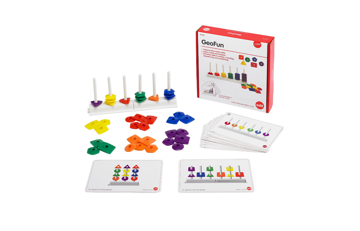 Learn to sort, count and make patterns with these geometric shaped colorful beads. Ideal for developing fine motor skills.