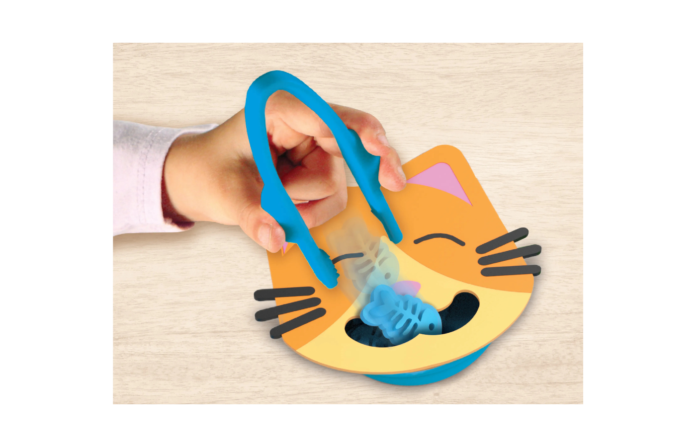 These adorable animals are hungry!! Kids grab their tweezers, pick up a piece of their favorite candy, and feed it to their new friend. With three levels, it's a delicious way to build hand strength, coordination, and more. Includes 3 tweezers and 30 counting candies.