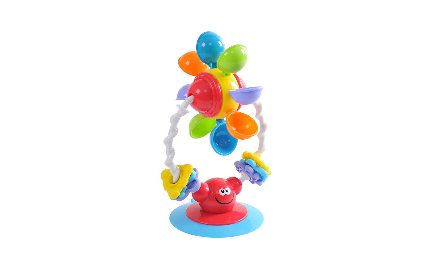 These toys teach your baby to discover colors, different textures and shapes! This way you help your baby to explore different senses. Stays on a table with the suction cup.